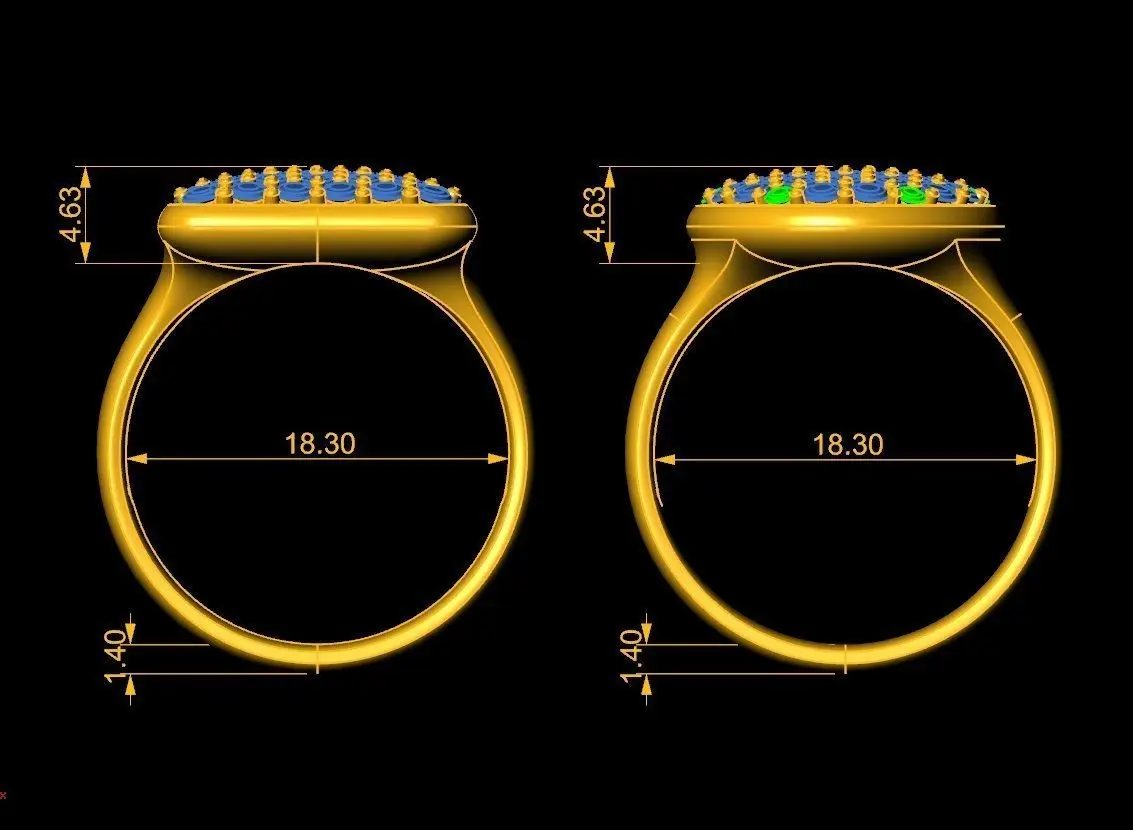 This 3D model showcases two men’s rings featuring both round and square face designs, fully set with multiple small stones in a pavé style. The detailed arrangement of stones creates a sparkling surface that enhances the luxurious look of the rings. The combination of strong geometric shapes and refined stone settings makes these rings suitable for both modern fashion and classic jewelry collections.