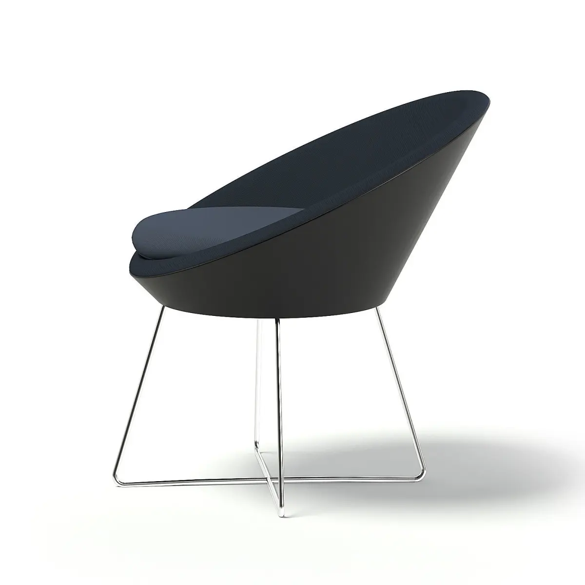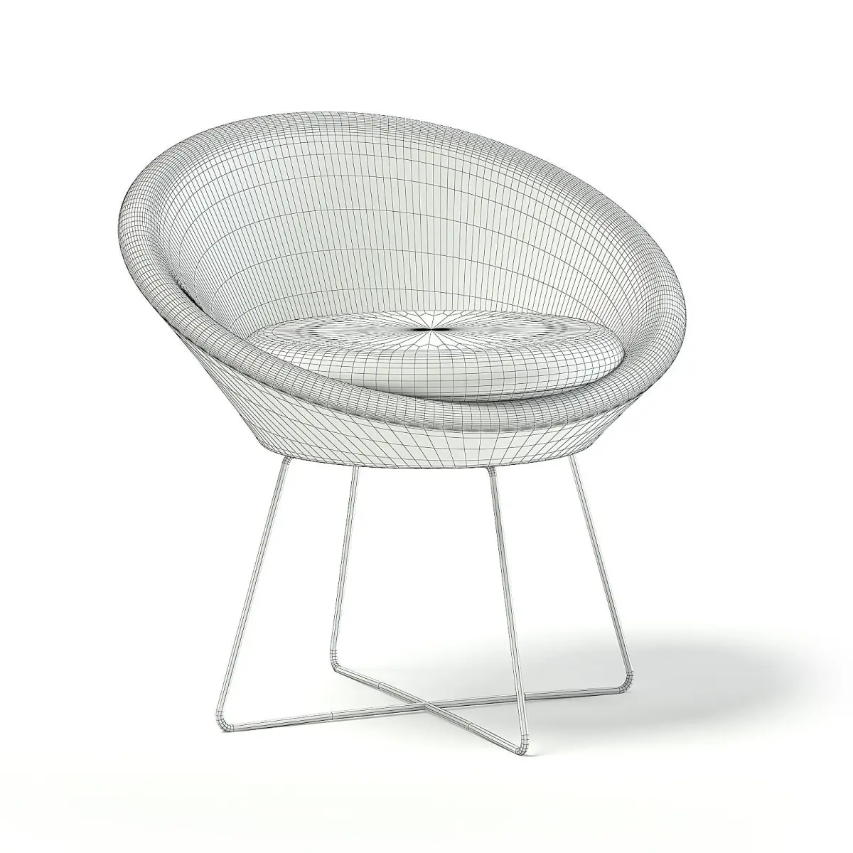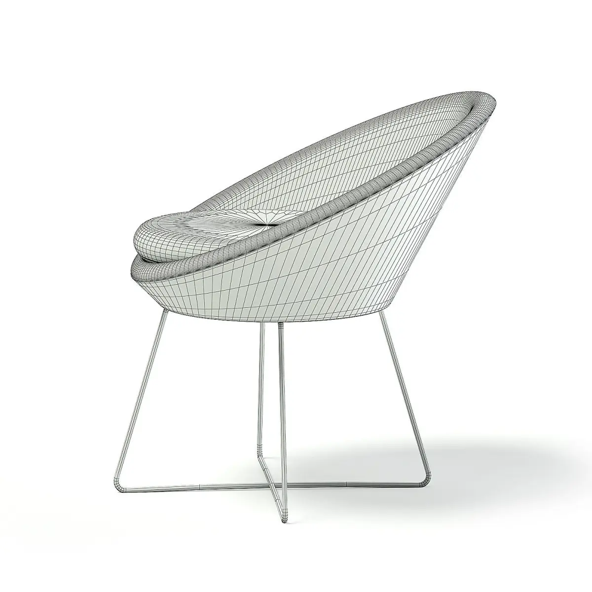 Round armchair 3d model. It has dark blue back, light blue seat and wire metal legs. Compatible with 3ds max 2010 (V-Ray, Mental Ray, Corona) or higher, Cinema 4D R15 (V-Ray, Advanced Renderer), FBX, OBJ and Unreal Engine.
