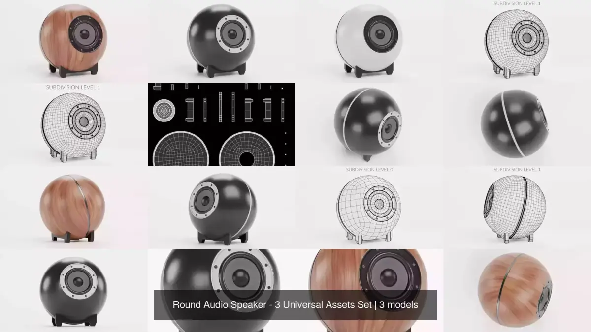 A collection of three modern, no-brand round audio speakers (wooden, black, and white versions) handcrafted in Blender. Each speaker is designed with a clean, minimalist finish to blend seamlessly into any interior, home theater setup, or visualization project. Built for versatility and realism.