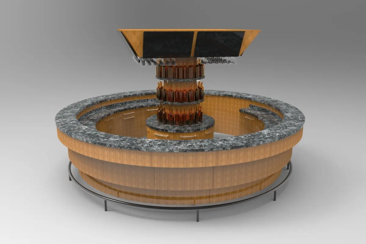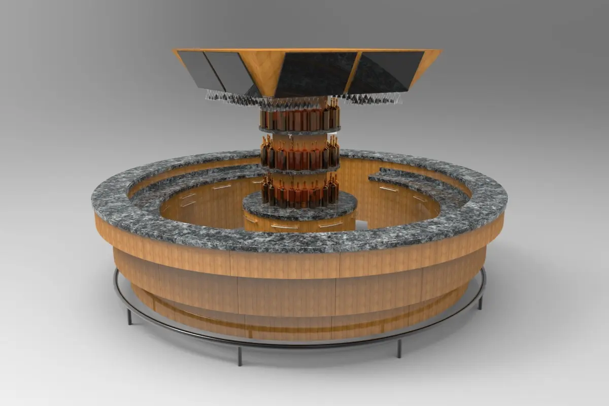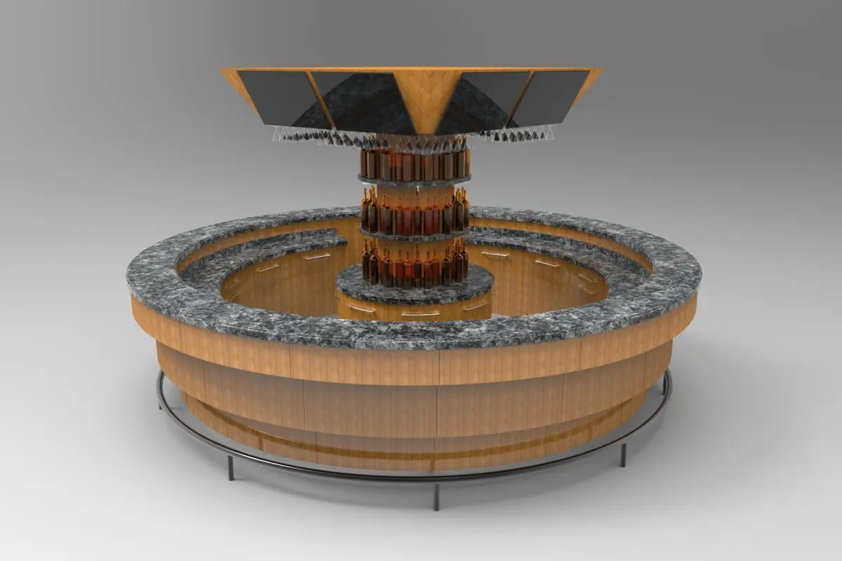 - A parametric round bar with mounted down light fixtures.