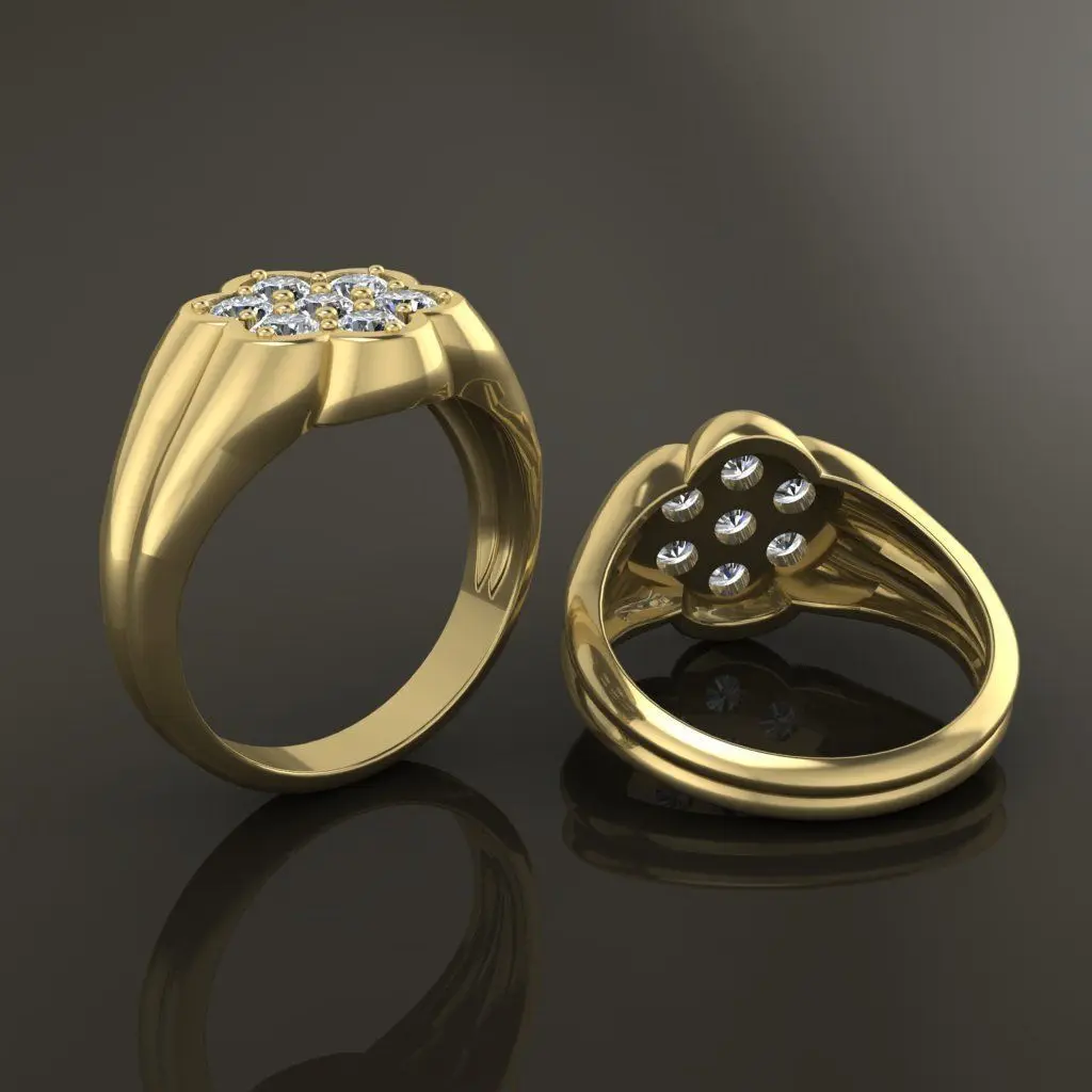 Round Cluster Diamond Ring Signet Band Mix Size (3mm)