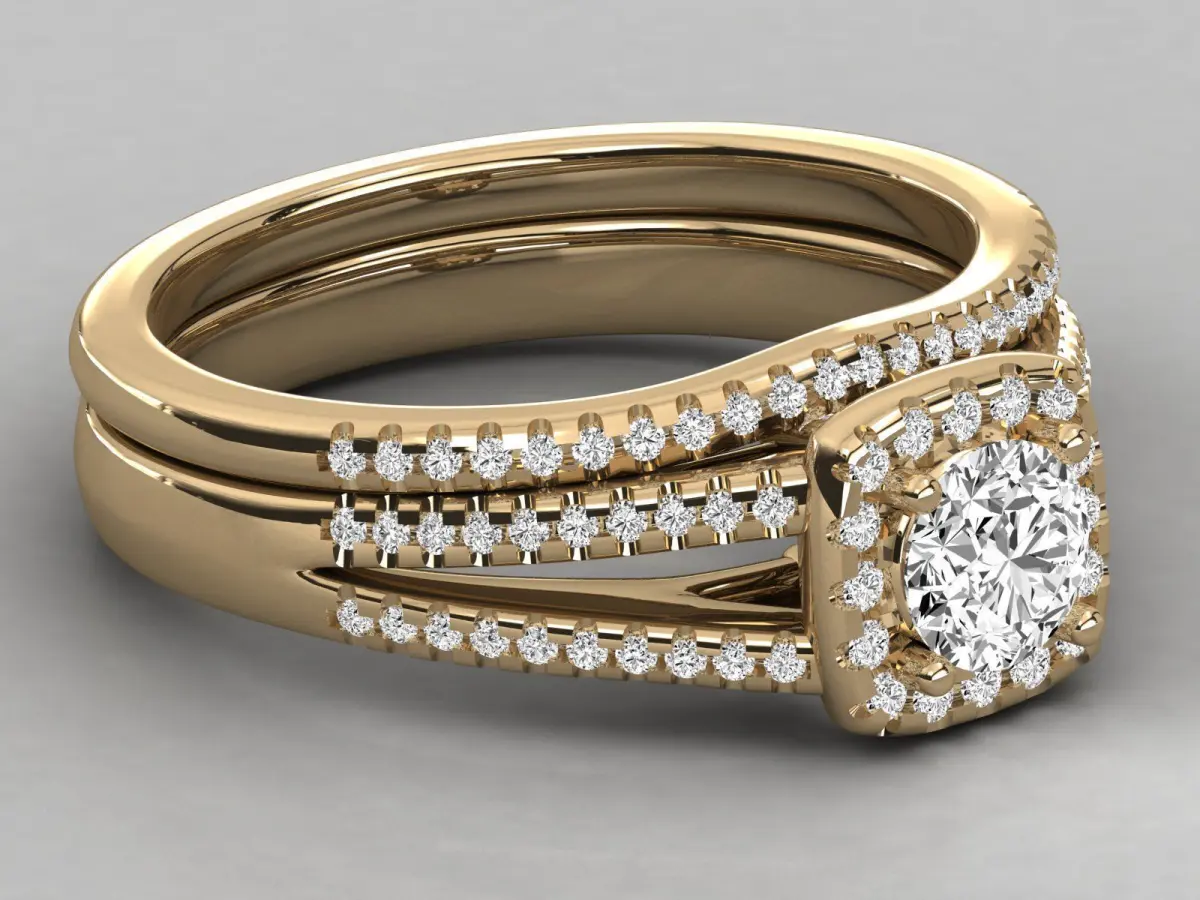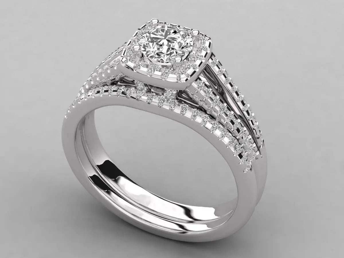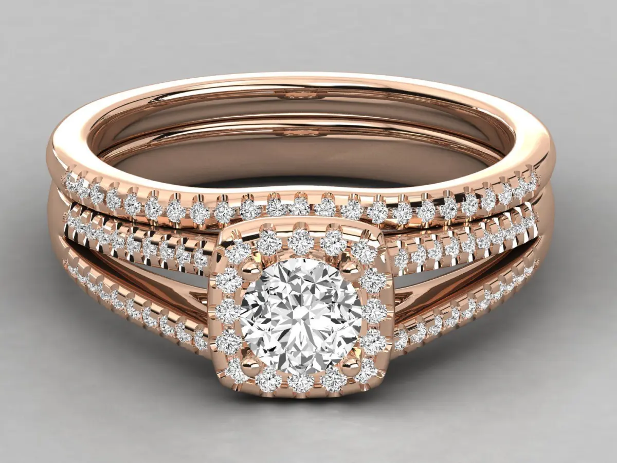 Round Cut Solitaire Double Shank Wedding RingThis beautiful 3d model ring features a stunning round-cut Diamond as the main stone, surrounded by a double shank design.. It's perfect for a wedding or any special occasion,. The ring is a solitaire setting style. The vintage-inspired design adds beauty, love, and fashion to any outfit.This product is designed in US Ring size 6.5Center stone is 5mm halo stones and side stones are 1.01mm, 0.90mm and 1.10mm .Please look at the pictures for more information.