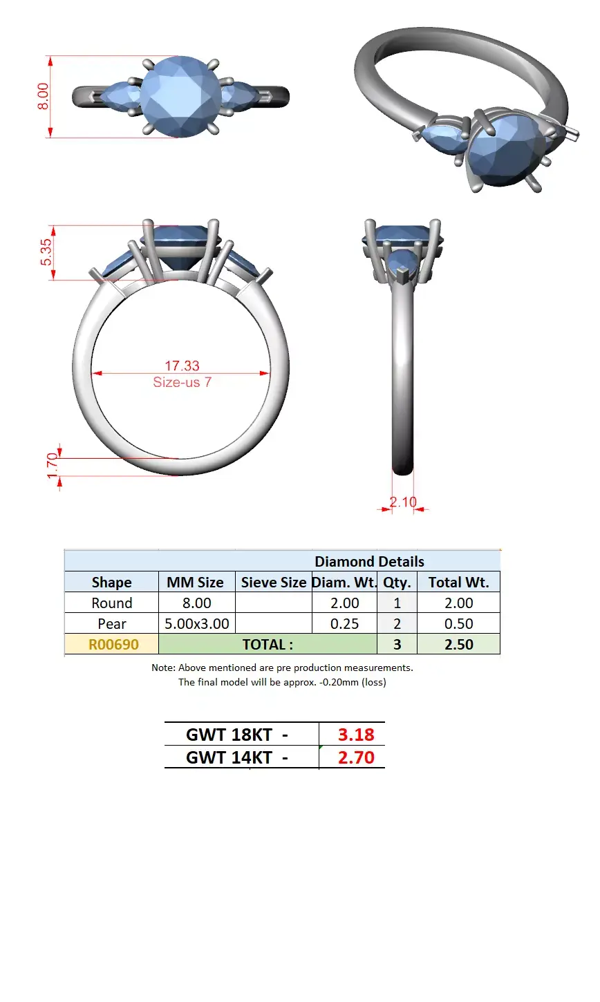 Important Points• Manufacturing-friendly design structure• Accurate stone seating for efficient stone setting• Comfortable band thickness for durability• Clean surfaces for polishing and finishing• Suitable for resizing and customization• Optimized for casting and production workflow