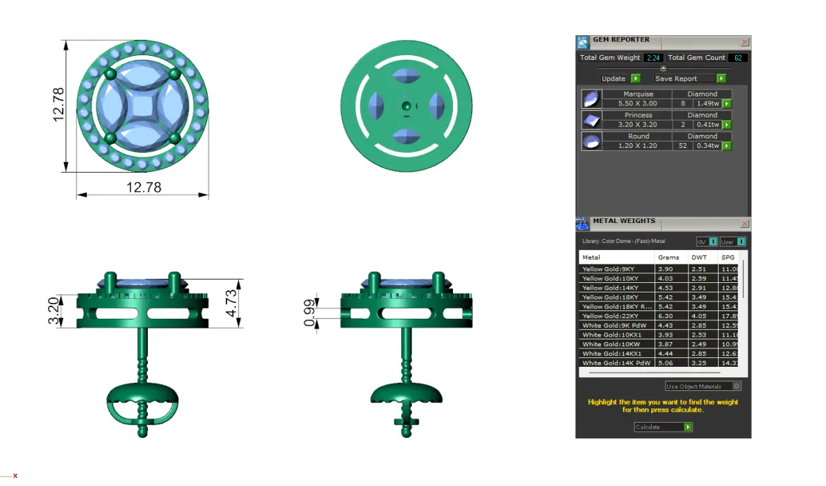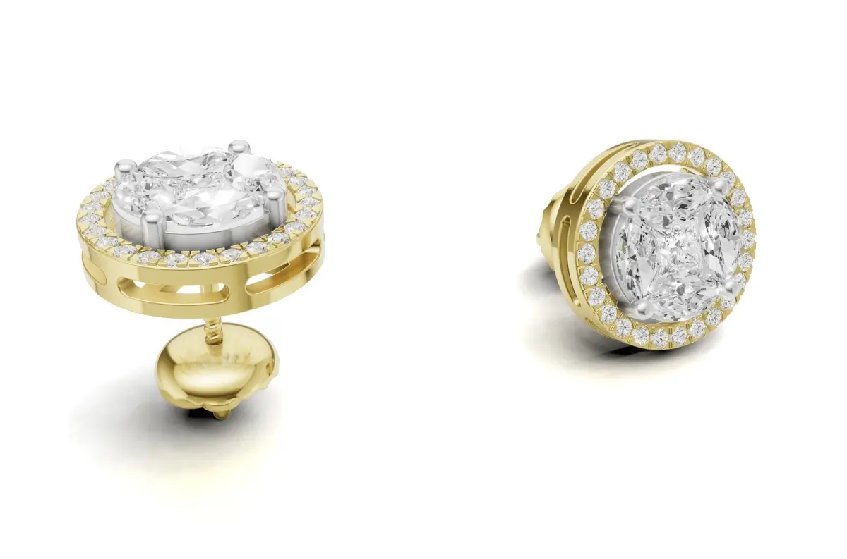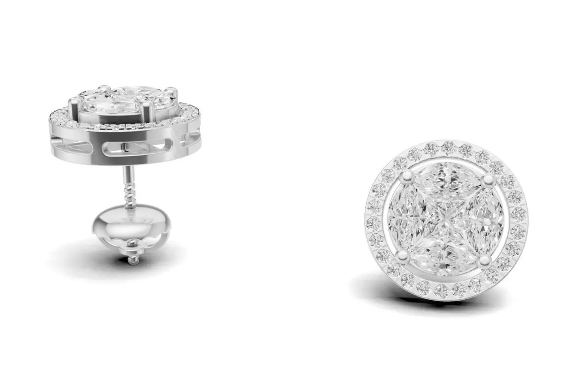 Round Diamond Cluster Stud with Marquise and Princess 3D print model