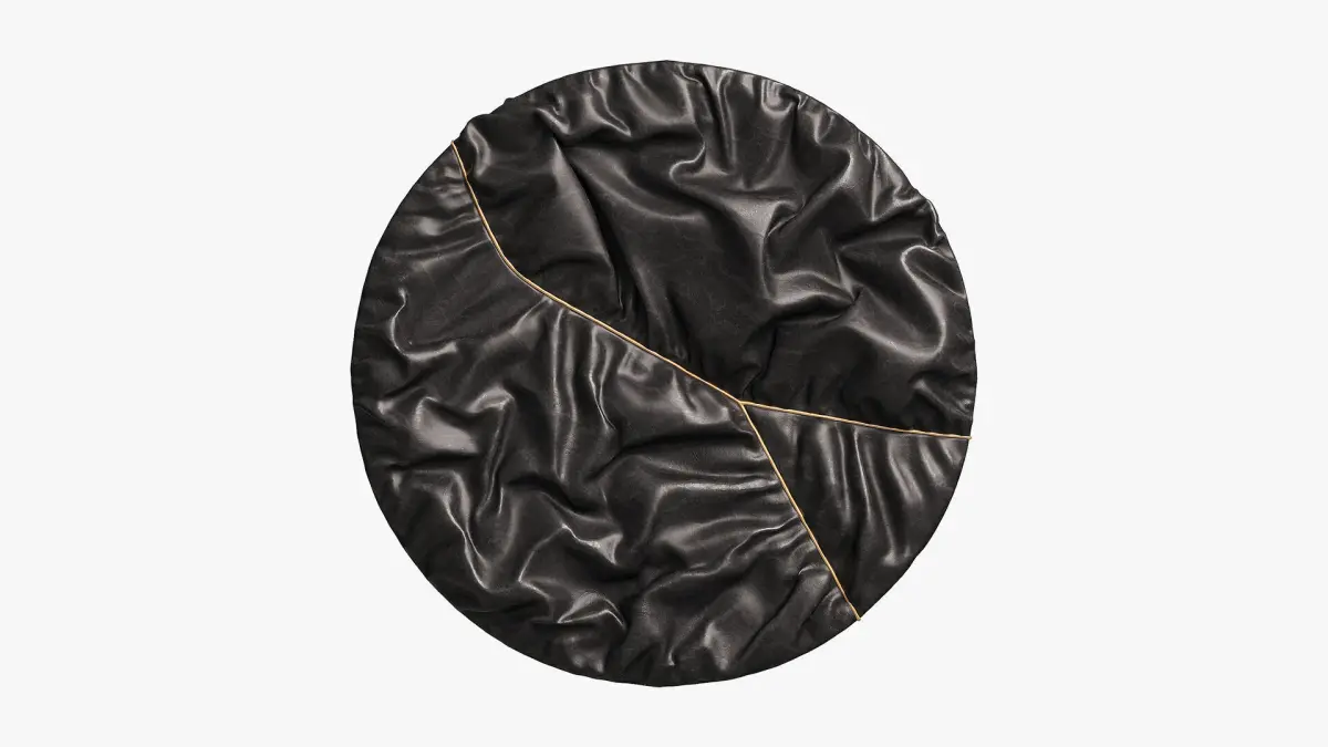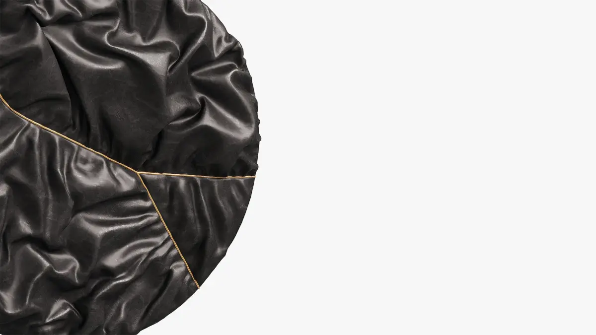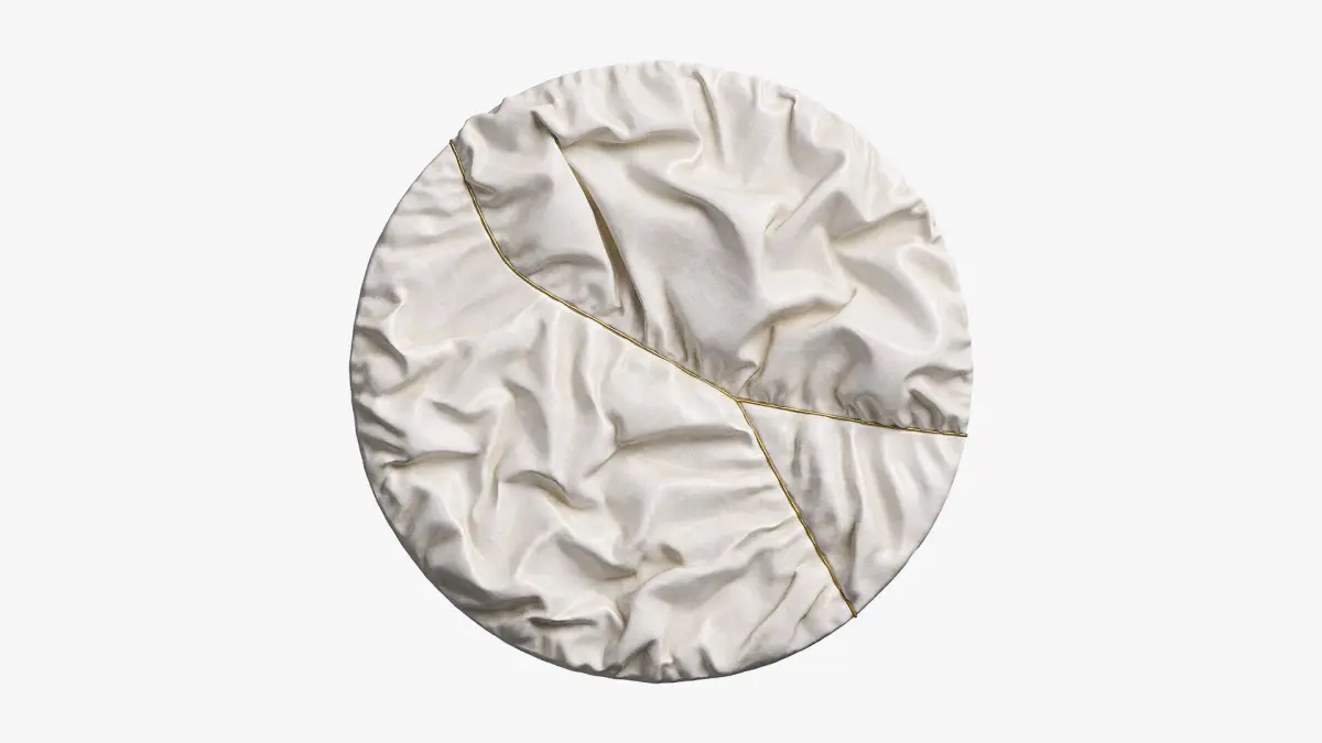 A relief round panel with a surface imitating the folds of fabric. There are options available in white and black. The panel is divided into three unequal parts by a metal seam matching the color of brass and gold. Panel material: imitation stone