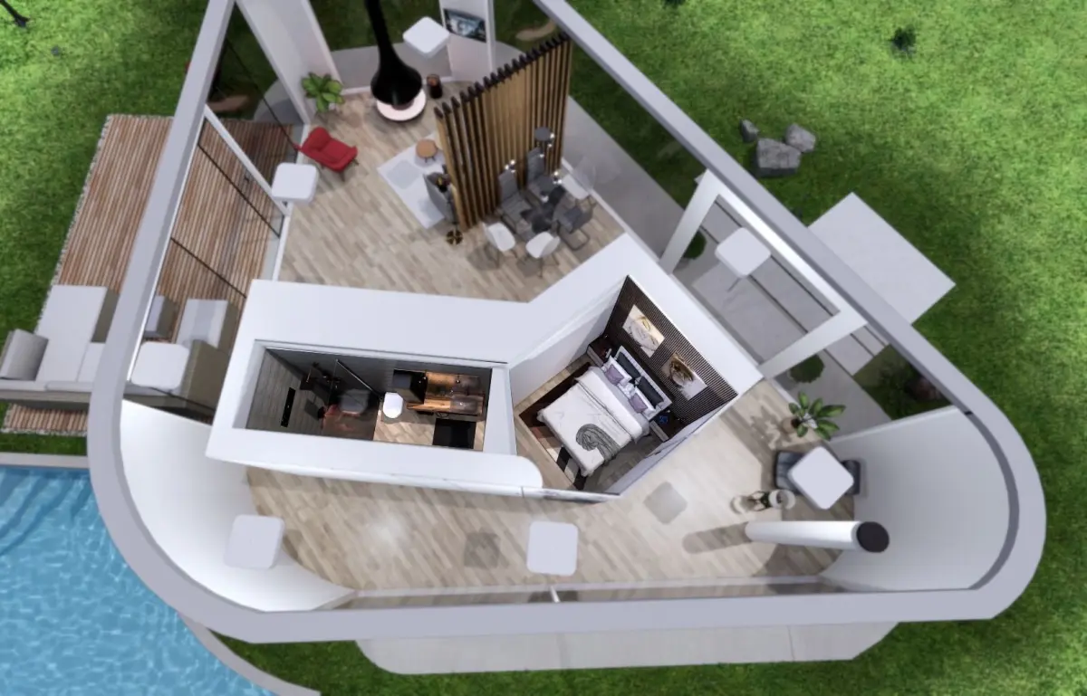 360 TOUR:https://kuula.co/post/7q8WJ/collection/7llY9Unique designed modern, round glass house .Highly detailed with lot of useful 3D models and furniture in it.Model contains fully furnished unit/house,all the furniture in bathroom,living room , kitchen, and terrace with outside pool. Model is done with sketch up and rendered with v-ray AND ENSCAPE. All textures are high resolution,have been checked and are included in scene.Model is easy to manipulate .Suitable for sea or lake sites for the mountain area. Low poly,Real world scale and exact proportions cm. Realistic and correctly scaled ! • Excellent polygon & texture efficiency Purchasing this model , you get files in different formats as :skp or ask designer for different formats.3DS max users can use sketch up ,2008 file formath , that i can provide.Unique designed,modern,highly detailed model with lot of useful 3D models and furniture in it.Model contains house with all the furniture in ,living room,kitchen . Also feature a paintings from my friend. Kitchen contains Owen,induction plate ,hood,sink,table ,chairs... Unique feature is second floor with glass roof and partial stone wall facade .Suitable for sea site area as for the mountain areas. Model is done with sketch up and rendered with v-ray. All textures appliances and furniture equipment is in high resolution,have been checked and are included in scene.Textures are compressed in zip file.Model is easy to manipulate and ready to render with v-ray.