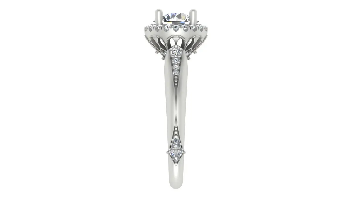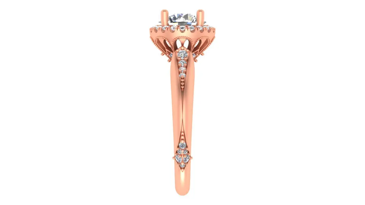 Presenting the Round Halo Diamond Engagement Ring, a stunning blend of elegance and craftsmanship. The ring features a brilliant 7.30 x 7.30 mm round-cut center stone, encased within a halo of sparkling accent diamonds, designed to maximize brilliance and allure. The slim, tapered band is adorned with micro-pave diamonds, adding a subtle yet luxurious touch. The under-gallery showcases an intricate filigree design, enhancing its vintage charm and regal aesthetics. A perfect choice for engagements, weddings, or special occasions, this ring radiates timeless beauty and sophistication.