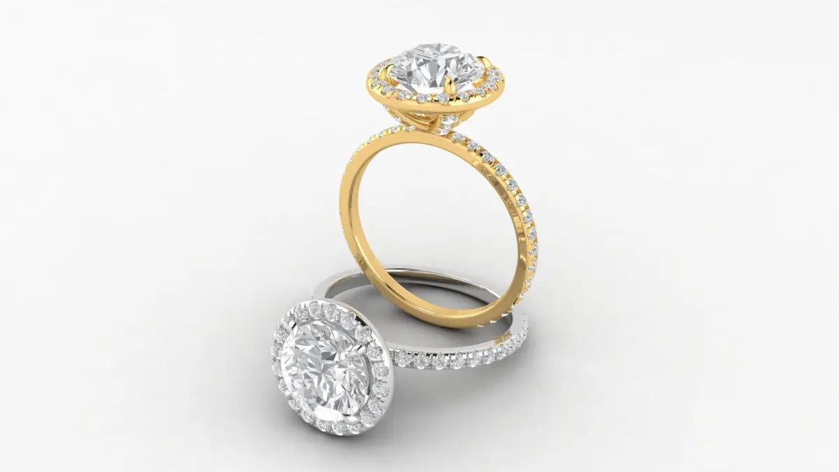 Turn heads and capture hearts with this iconic bestseller. Featuring a dazzling round-cut center stone encircled by a halo of pavé-set diamonds, this ring is elevated by a diamond-accented band and intricate hidden detailing beneath the setting. Available in both 14K rose gold and 14K white gold, it offers a timeless silhouette with irresistible brilliance. Loved for its elegance, sparkle, and stunning craftsmanship—this ring is a forever favorite for modern romantics.