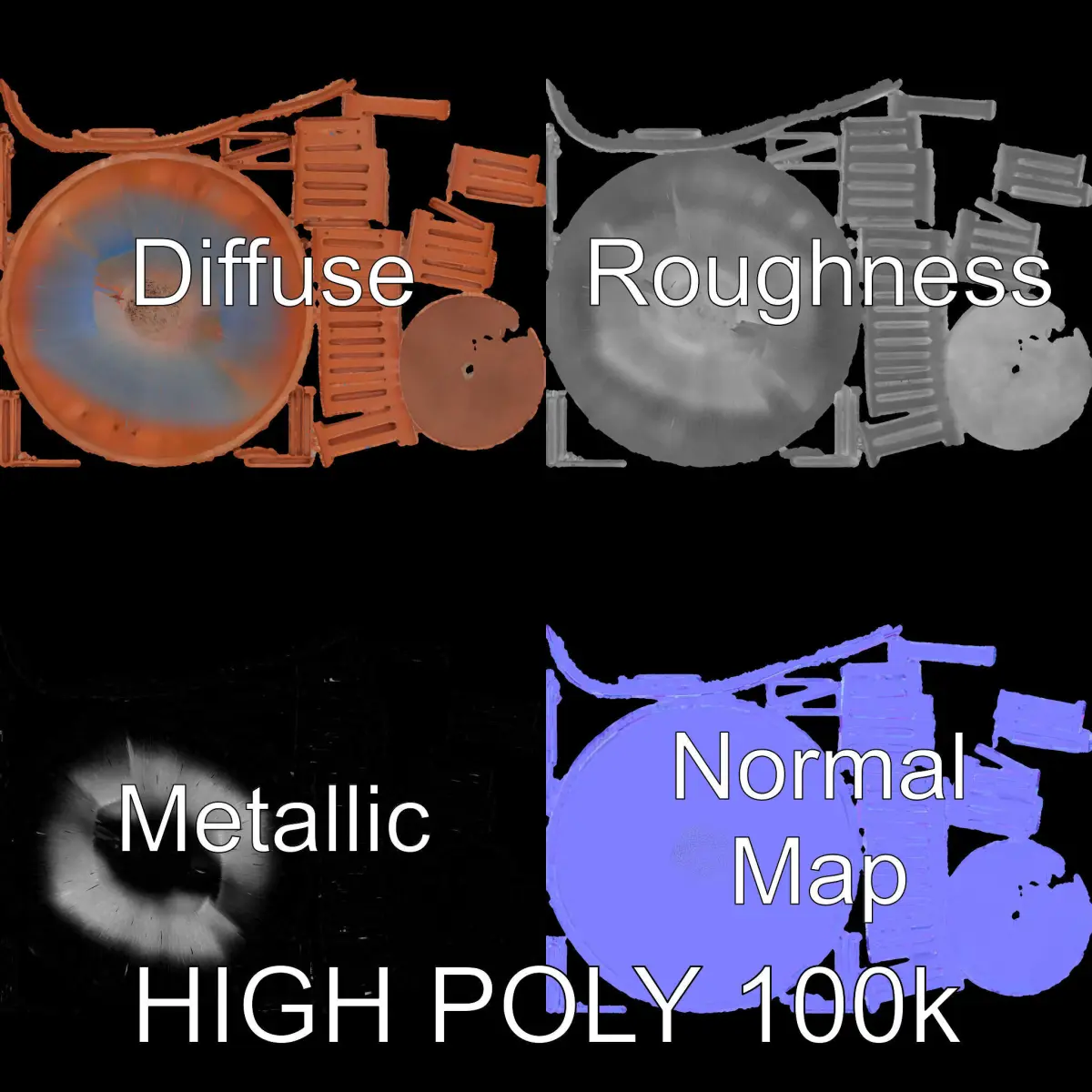 Textures are PBR-based with Diffuse, Normal Map, and reflection/roughness/metallic settings, all accurately unwrapped with no overlapping UVs, including 4096x4096 texture resolution.
