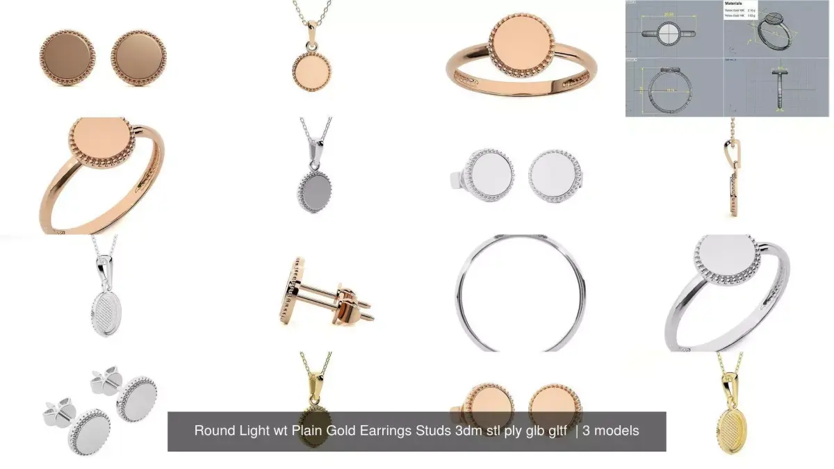 - 36 renders ( 4 view in 3 colors-yellow/white/rose of ring-earrings-pendant)