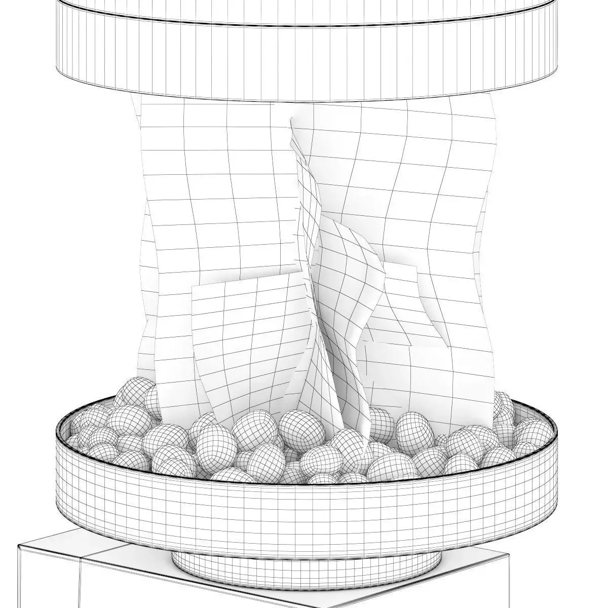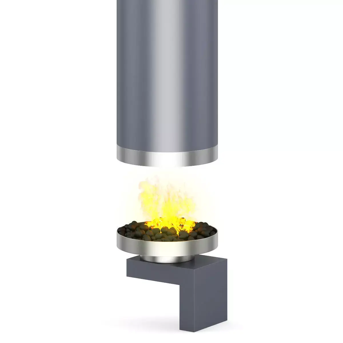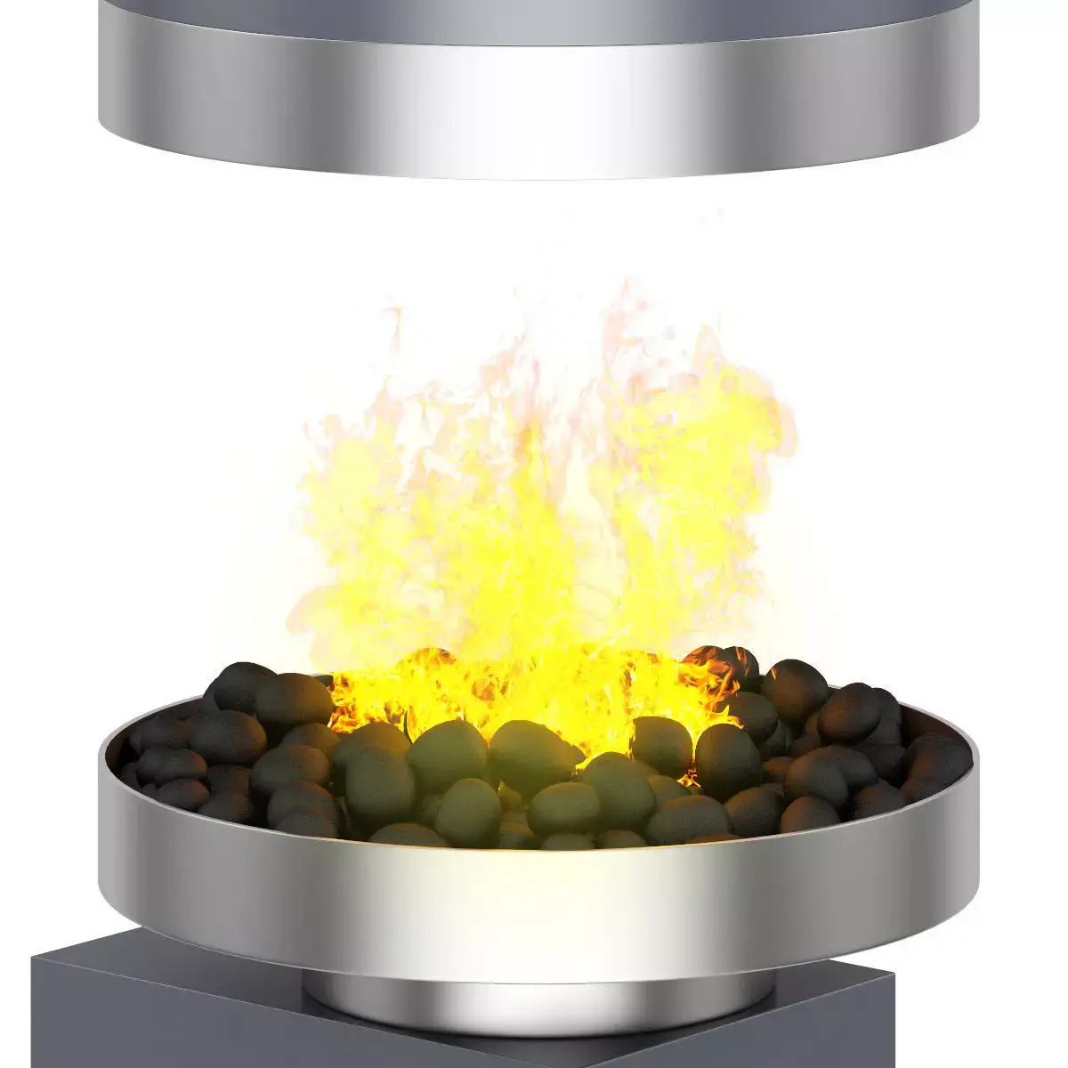 Large round metal eco-fireplace. This 3D model contains illuminative fire material.