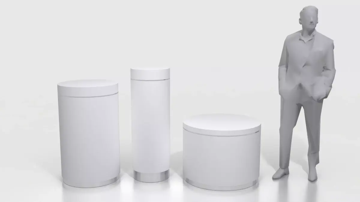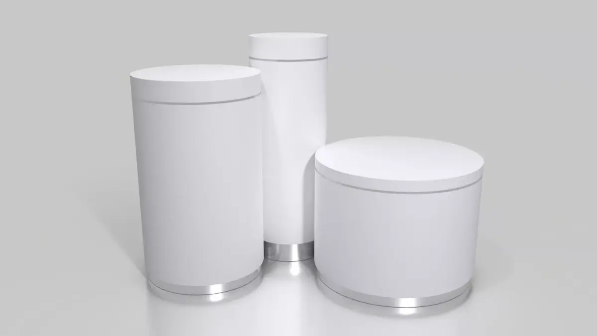 This pack includes three types of round pedestal stands designed for flexible display usage: