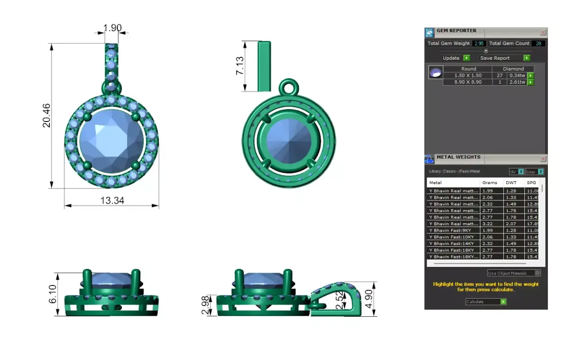 Round Pointer Diamond Pendant With Yellow Center Stone 3D print model