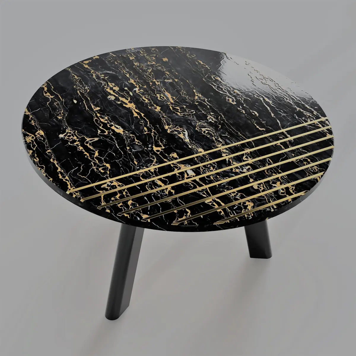 Round side coffee table, 3 legs, top with brass inserts.dimensions: diameter 550 mm, height 380 mm