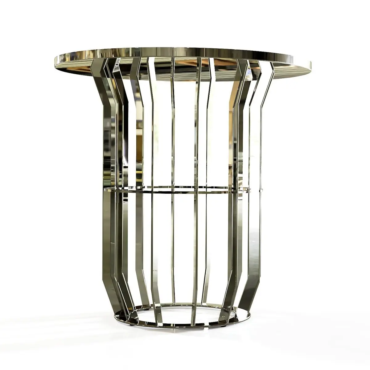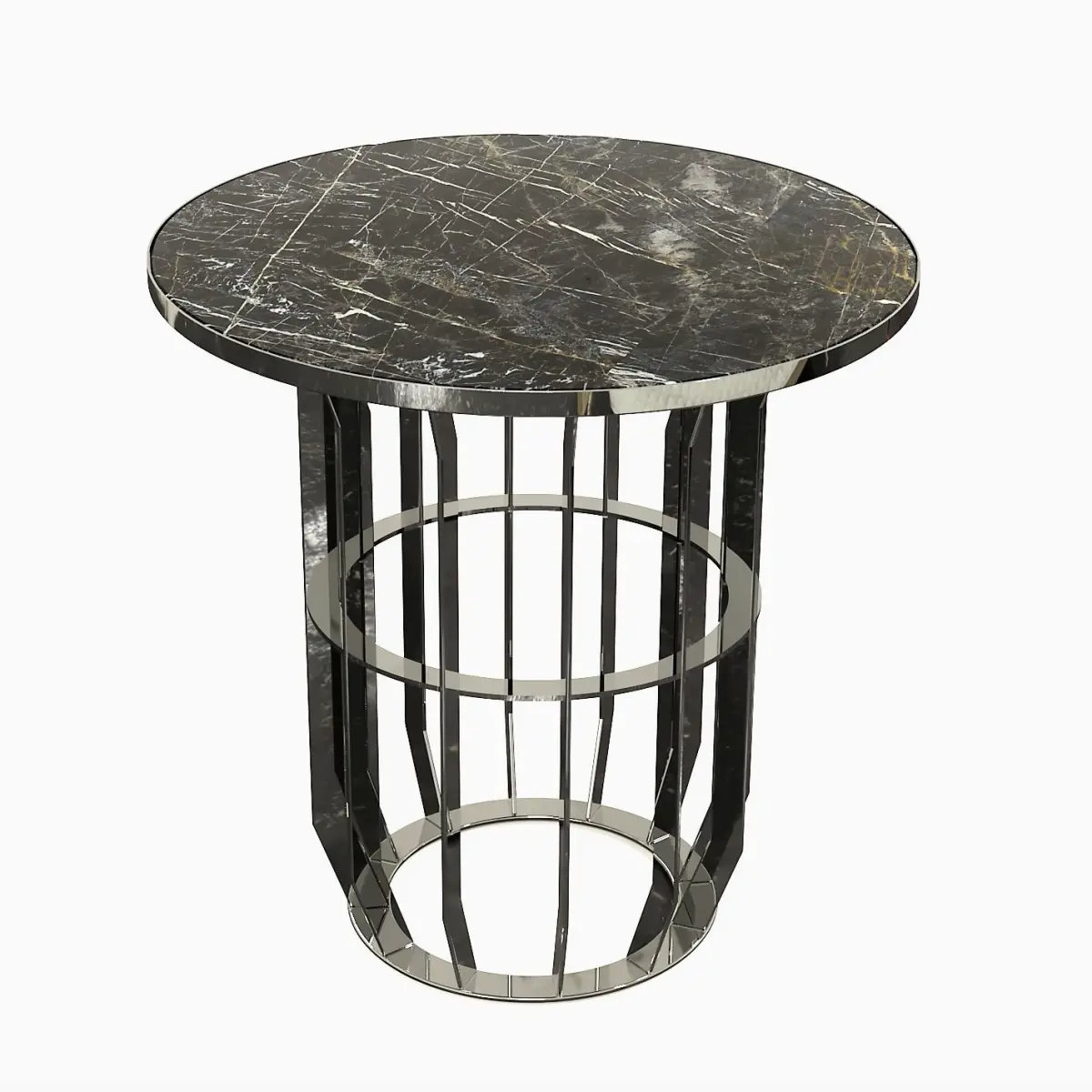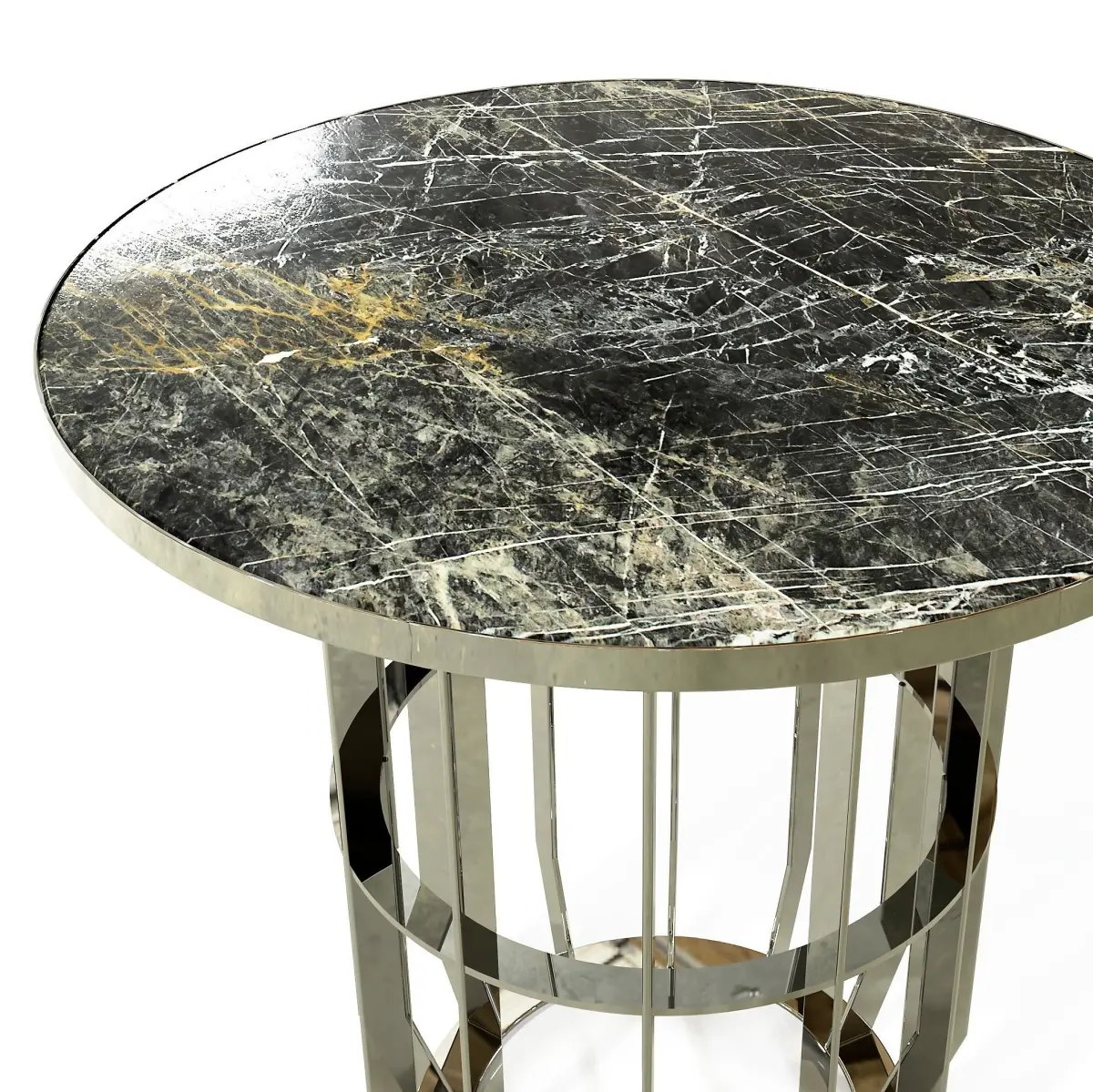 Round side table, metal structure and black Portoro marble top.Dimensions: diameter 600 mm, height 600 mm.