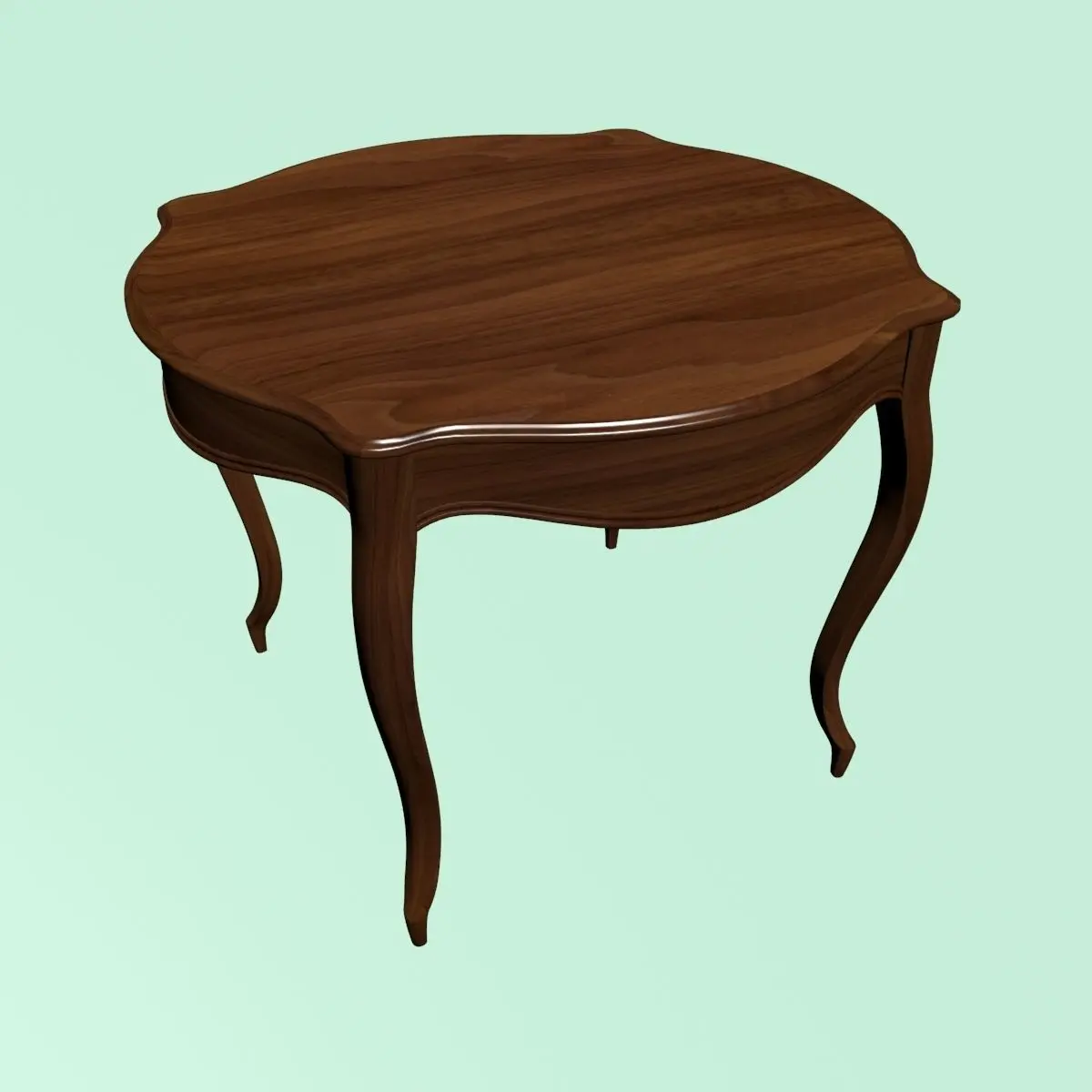 Round table with cabriole legs.Height: 74cm.Length: 93cm.Width: 95cm.