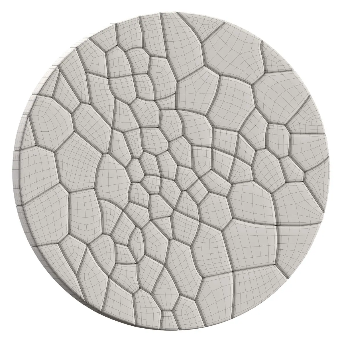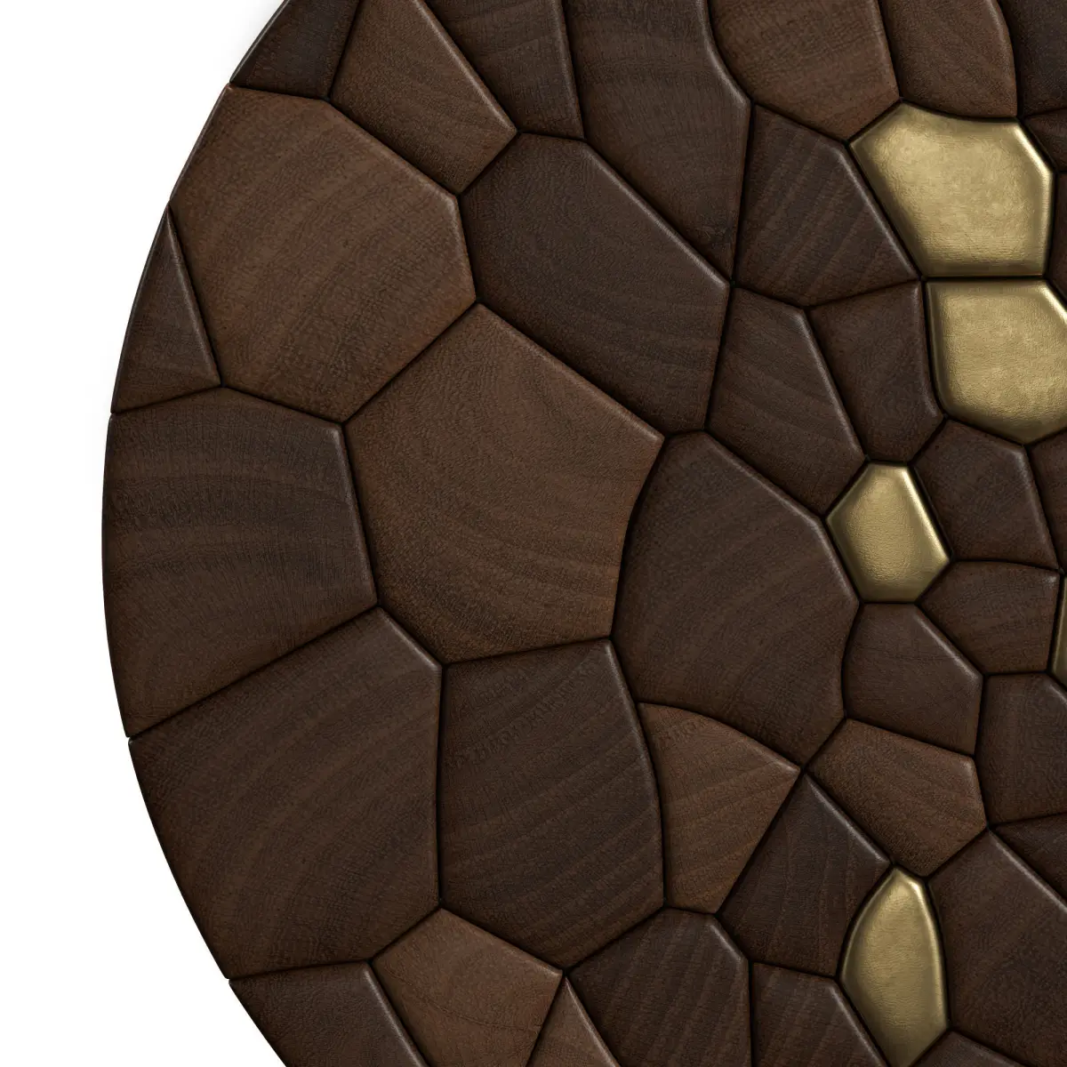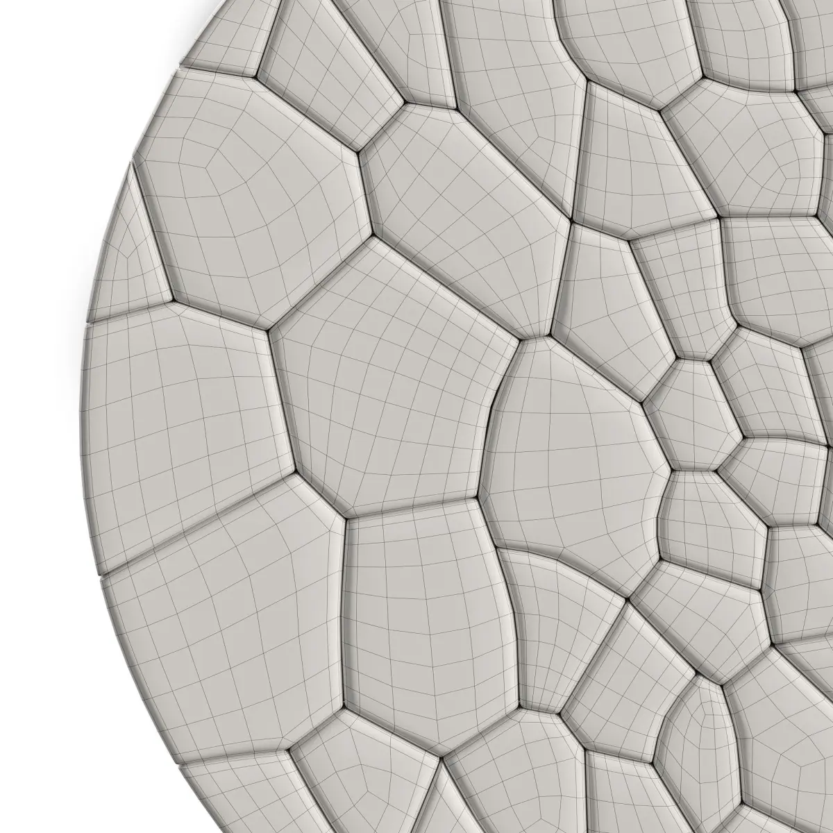 A panel of wooden tiles of end cuts of chaotic shape organically fitted to each other. Reminiscent of the natural motifs of the micro and macro world. High detailed 3D modelAll geometry is ready for subdivisionUVW MappedPolys: 26496Verts: 28244Dimensions: 100 x 4 x 100 cm