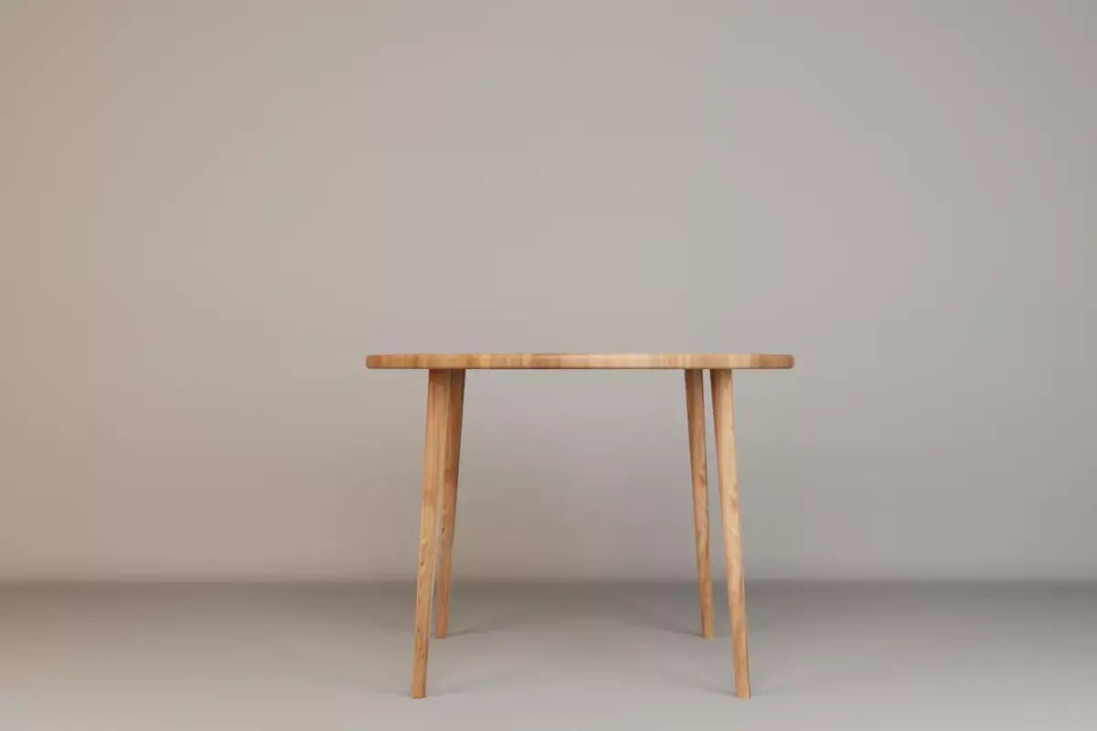 This modern round wooden dining table is designed in a clean Scandinavian / minimal style, ideal for interior visualization, architectural renders, product shots, and real-time projects.