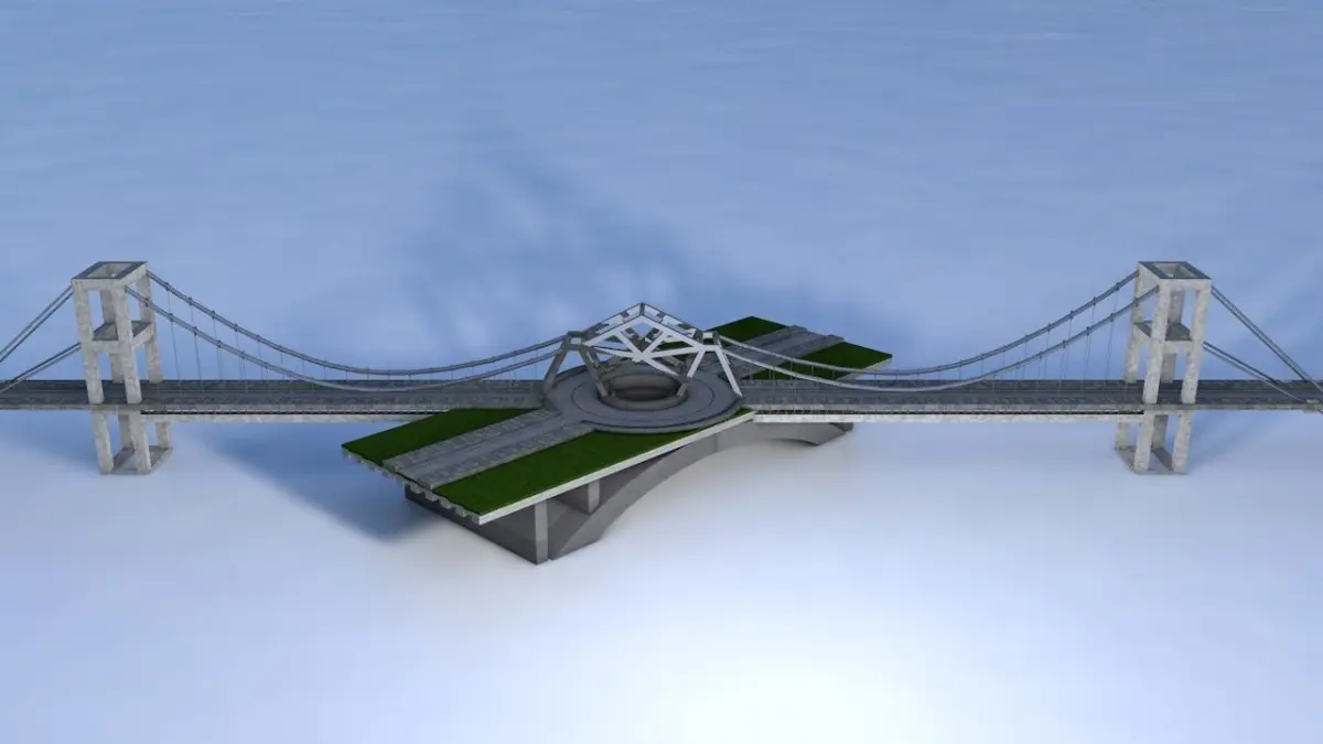A double bridge with a roundabout in the middle! the position of the two brides can be changed.