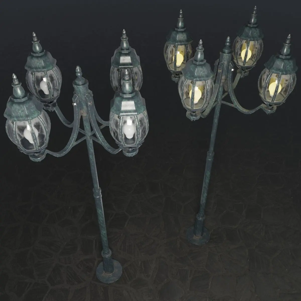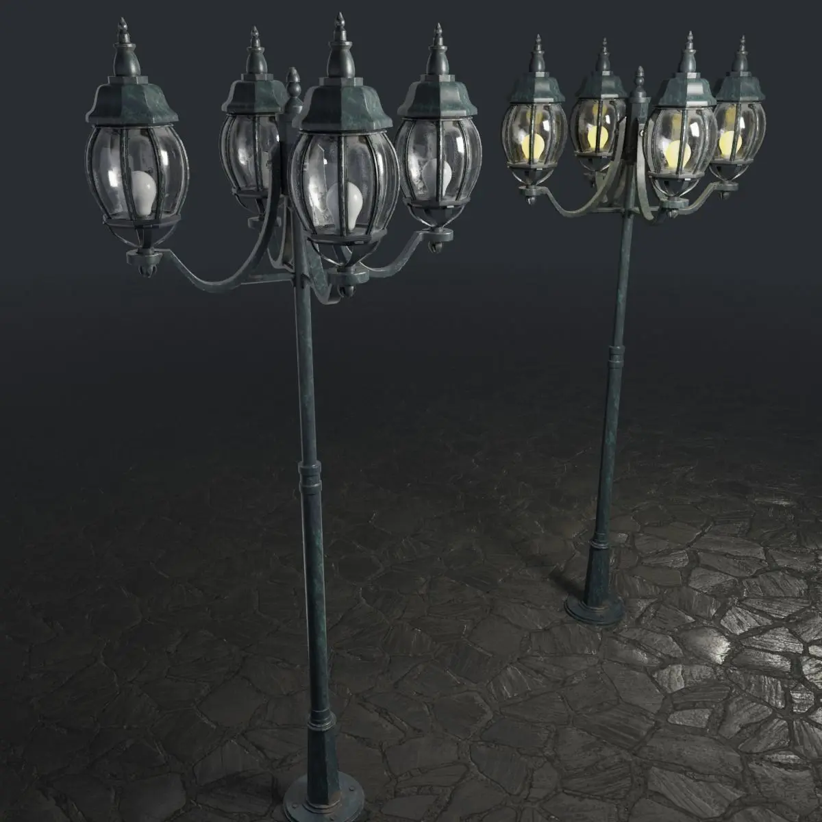 A highly detailed model for use in exterior visualizations. It has one textures set 2048x2048, PBR Metal/Roughness. Emmisive map included in textures, which allows you to adjust the lighting of the lamp. The model has one level subdivission, but can also be easily subdivided into higher levels.