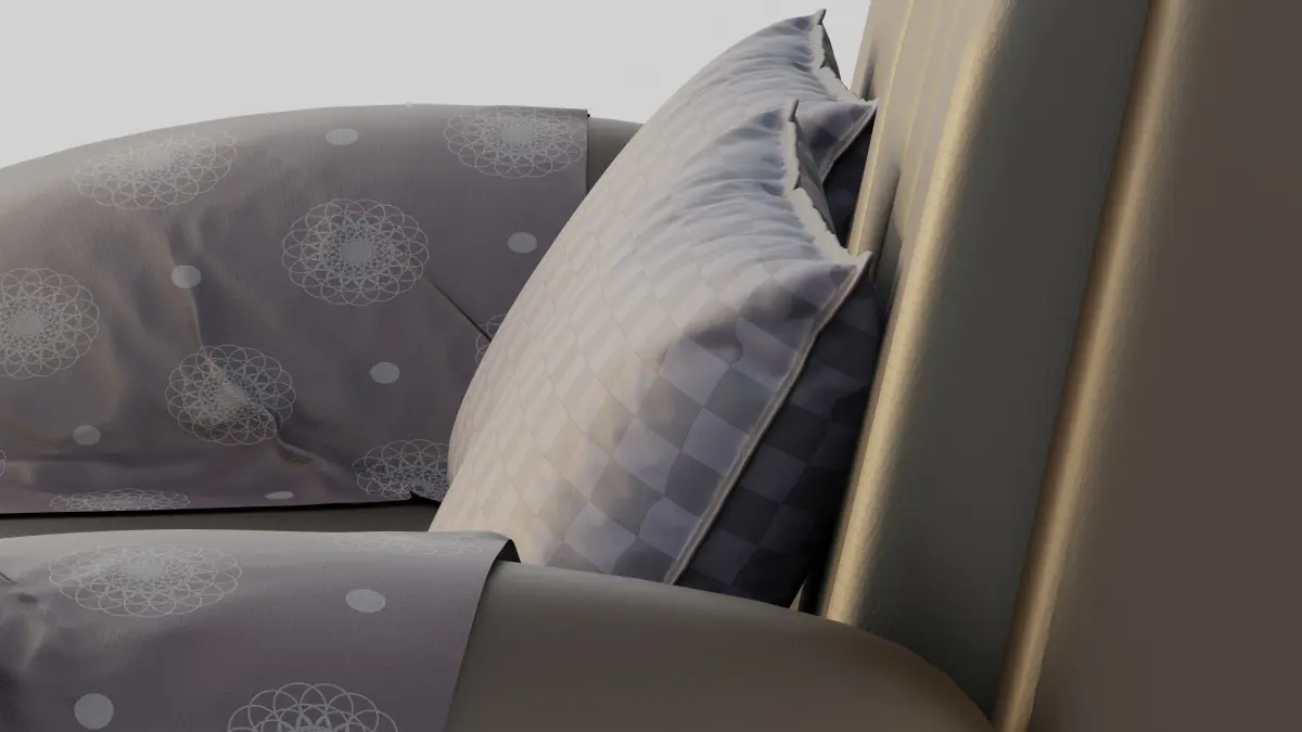 _This is a 3d model of a Rounded wedge arm sofa enveloped in a matte checkered texture with clean topology and can be used in indoor scenes .Textures and blend file are included in the zipped file ._