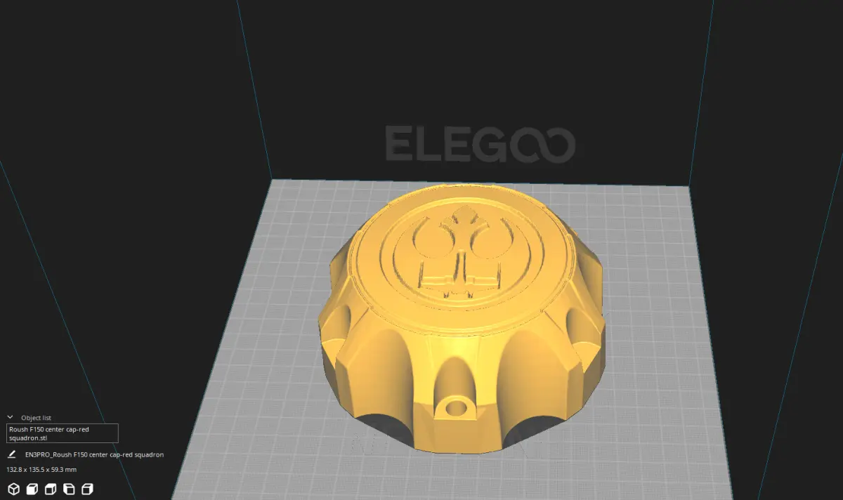 Direct replacement for a Roush F150 center cap, with a star wars logo embossed on the face. It was a custom job but realized this cap is hard to find so I decided to post it here in case anyone else needs it.