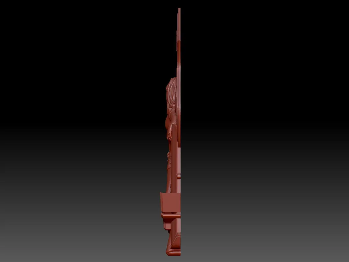 A three-dimensional bas-relief model with the name Route. This is a bold and fascinating project, which depicts a girl at a gas station. The model can be used for 3D printing and processing on a numerically controlled machine.