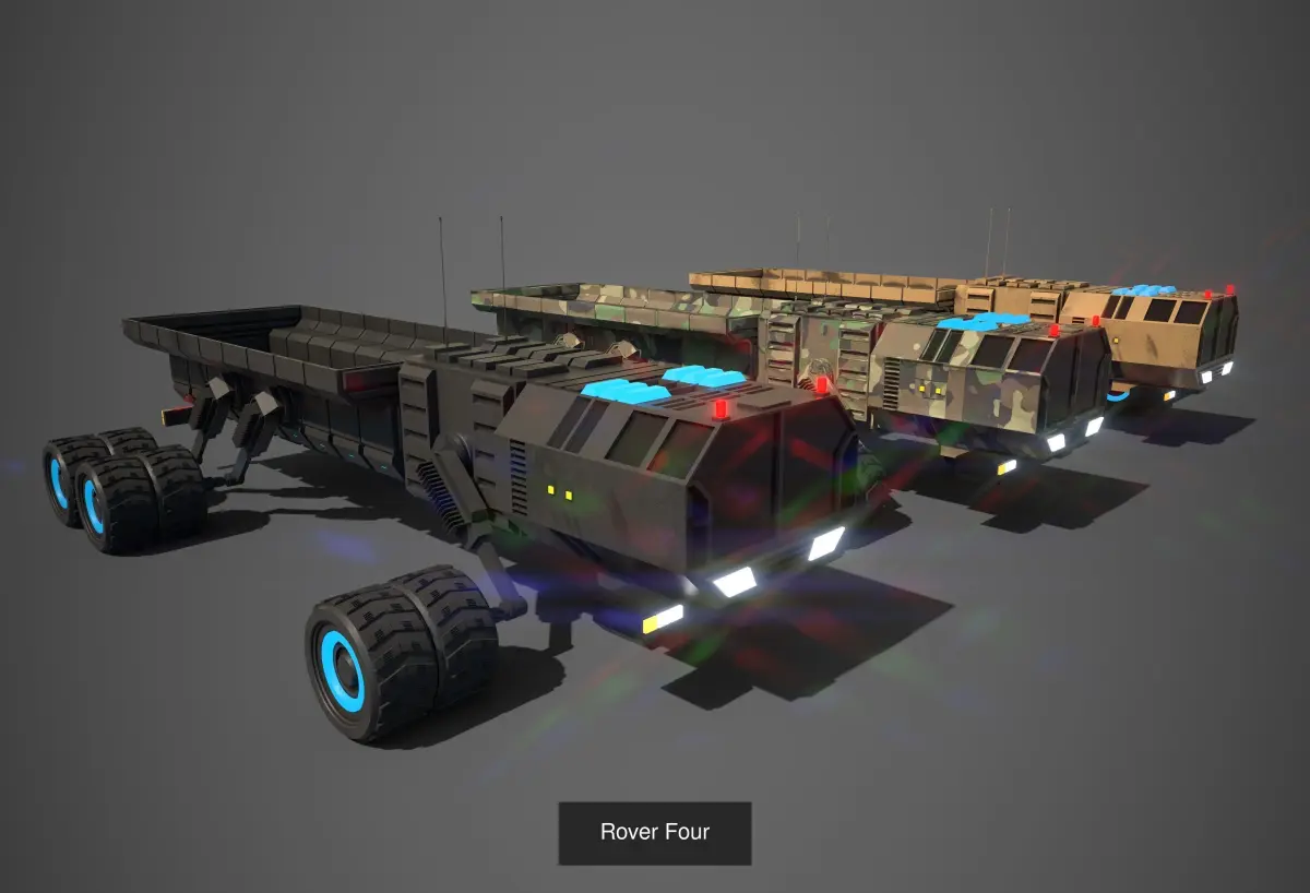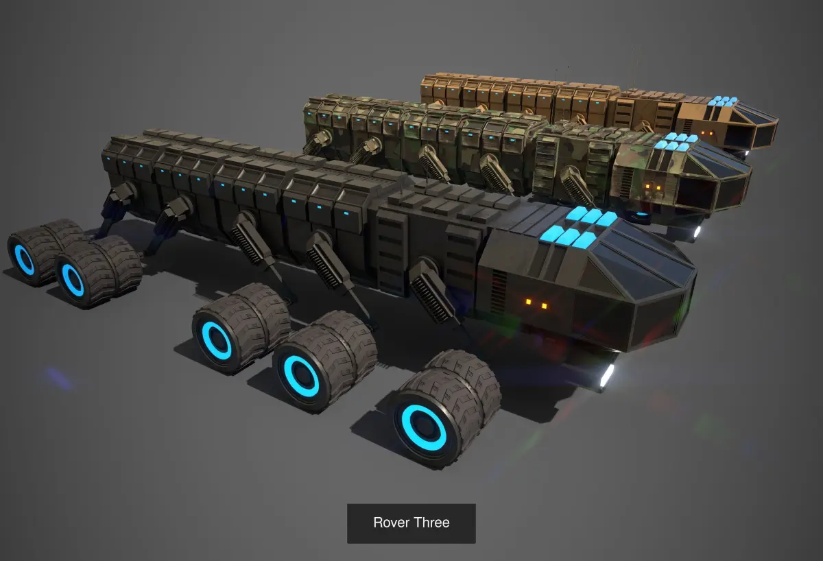 Rover Collection is the collection of all rover assets. The collection is very good for RTS games and setup but you can use them in first person and thirdperson games also. the details are given below.