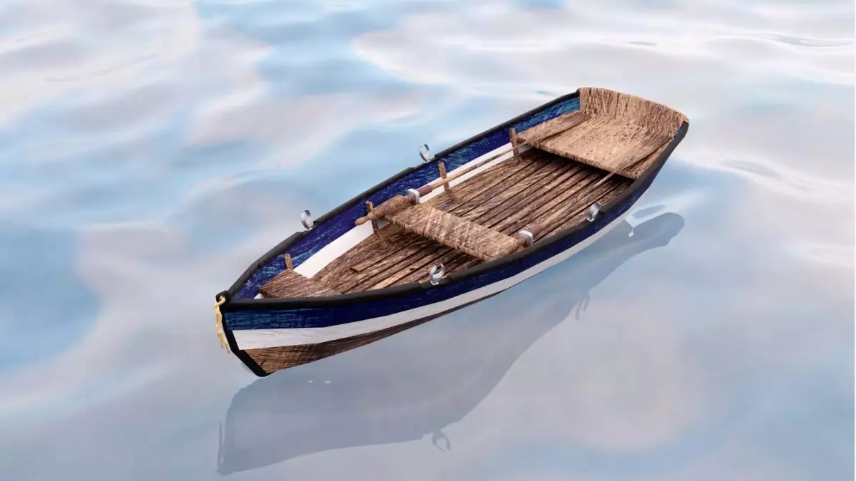 Animated rowboat for your fishing game and ocean-based needs, or for use as a harbor-side prop.