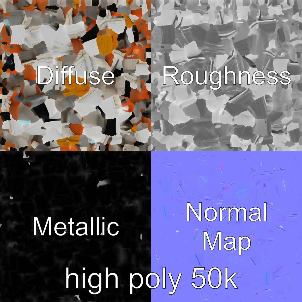 The model's textures are PBR, Diffuse, NormalMap, and reflection/roughness/metallic, which are suitable for any modern rendering engine. All models accurately unwrapped and have no overlapping UV.