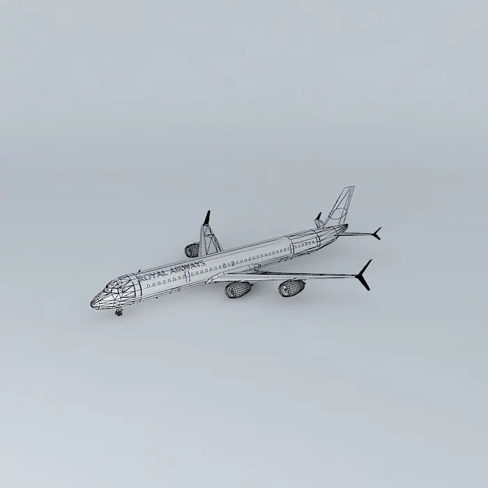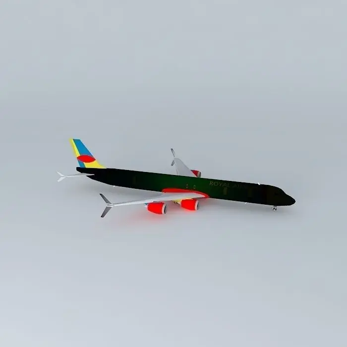 This 3D model was originally created with Sketchup 8 and then converted to all other 3D formats. Native format is .skp 3dsmax scene is 3ds Max 2016 version, rendered with Vray 3.00 GEnx engines by 707, engine holders by AirbusA330, landing gear by Mr Planet, original DC-8-60 by 707, winglet by rintaro3776. Just as I told on our website [link below], this airliners were refurbished. To a different plane. Now, this is still a DC-8, but called differently - DC-813ER - ER means Extended Range. Having 4 GEnx engines taken down from 787's, this aircraft now can fly 16,400 Nautical Miles or 30,400 kilometers! It's only 9,675 kilometers less than the circumference of the Earth! Also, this is on of the only aircraft to have winglets on the rear wings. As-well there are no more eyebrows on this aircraft. And, to make the dynamics of the aircraft better, there are double winglets here. I'm gonna upload the template later. Now, all 10 DC-8's are those DC-813ERs. Info on our website - click Royal Airways.