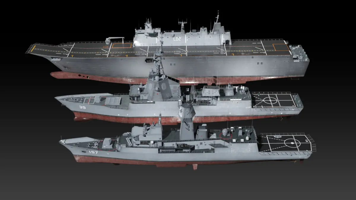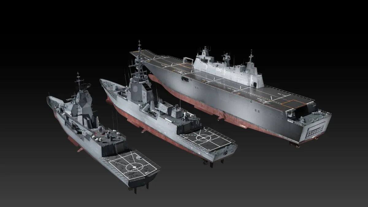 Surface warships of royal Australia navy. Amphibious assault ship Canberra class, Guided missile destroyer Hobart class and Anzac class frigate. All models are uv-mapped and game ready. Native format is Blender, FBX and OBJ format supported.