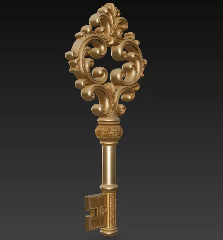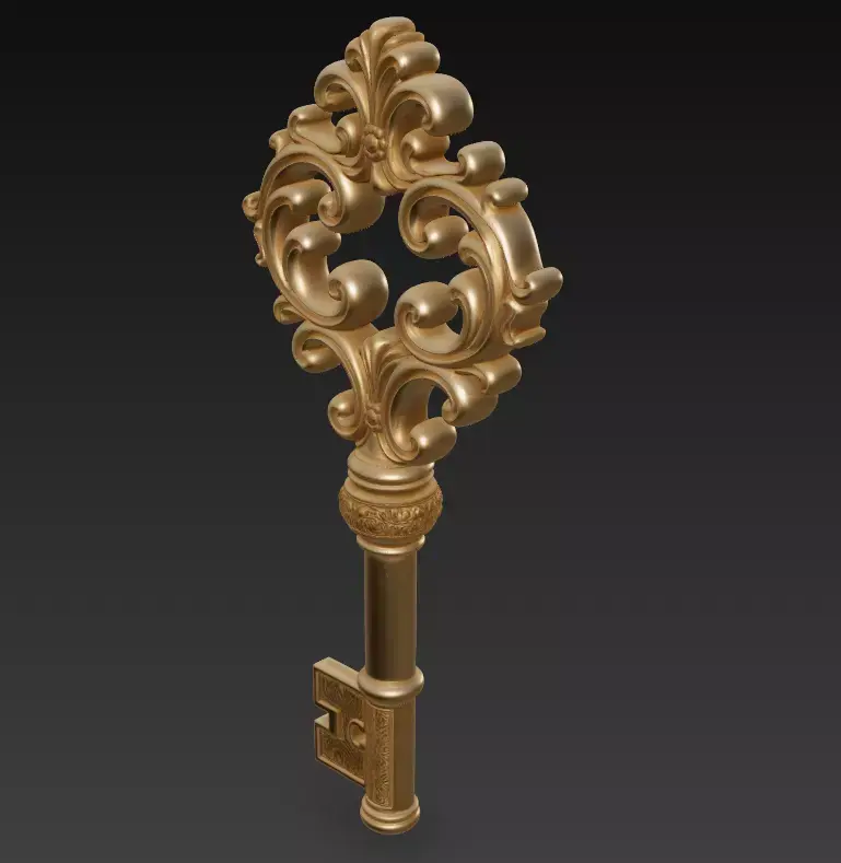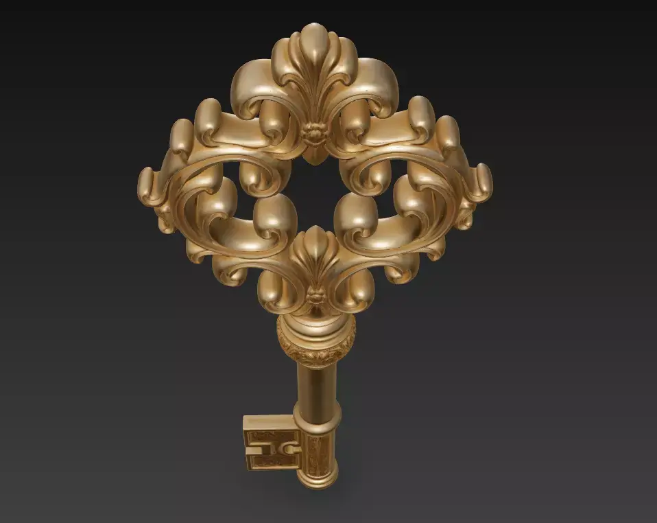 This exquisite 3D model presents a royal baroque-style key, crafted with perfect symmetry and ornamental precision. The design features elaborate curls, floral motifs, and regal proportions that embody luxury and artistry. Ideal for architectural visualization, fantasy design, and fine 3D print sculpture, this model brings timeless sophistication to any scene.