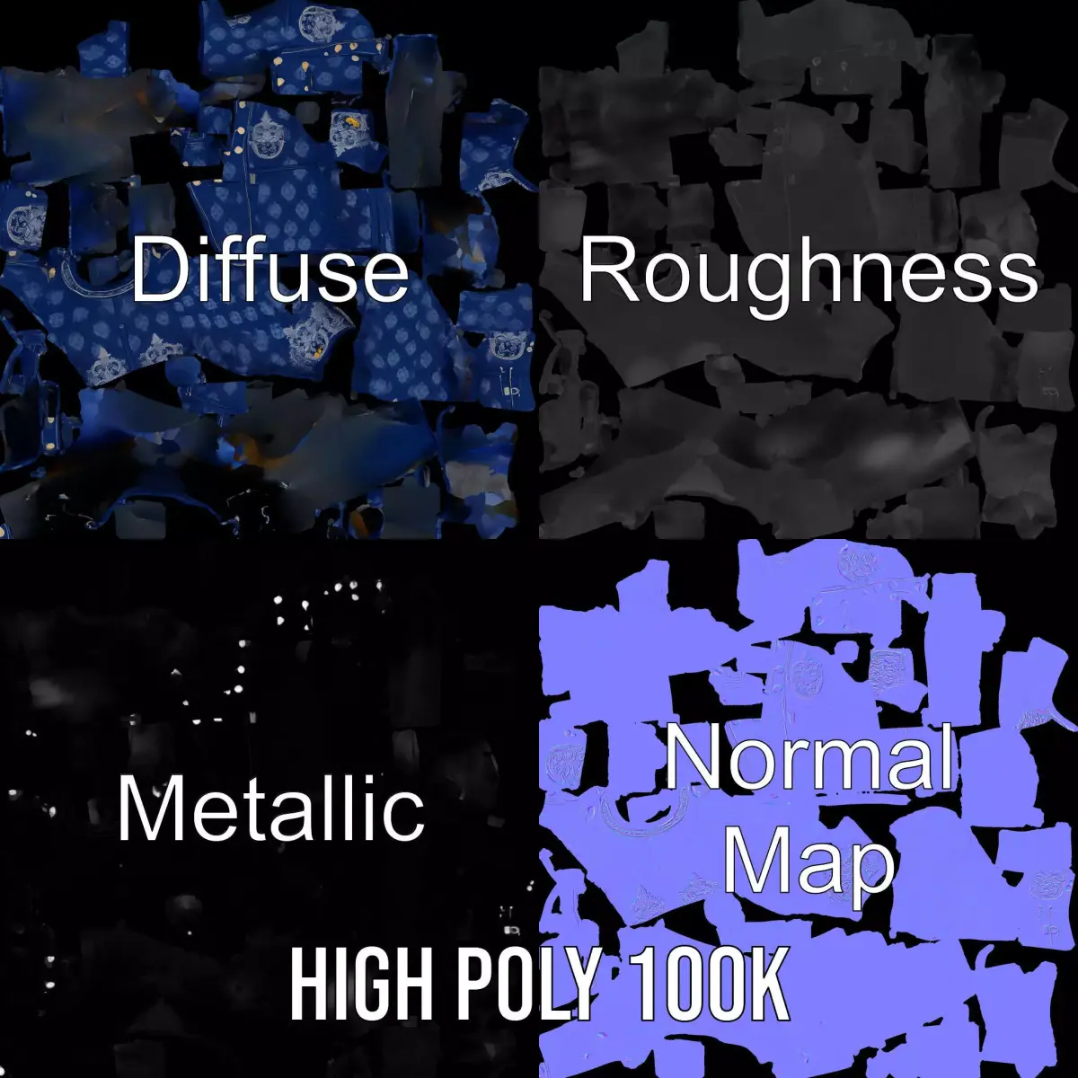 This Royal Blue Embroidered Jacket model pack is ideal for adding a touch of elegance and sophistication to historical reenactments, character design, or period films. Each model has 3 levels of detail: low-poly (1000 triangles for mobile), middle-poly (10,000 triangles for environment), and high-poly (100,000 triangles), which allows for the use of this model in production rendering (such as 3ds Max, Maya, Cinema4D, Blender, Vray/Corona/Cycles and all others), game engines (Unity and Unreal compatible), and interactive presentations, providing a choice of detail based on the LOD System principle. The model's textures are PBR, Diffuse, NormalMap, and reflection/roughness/metallic, which are suitable for any modern rendering engine. All models are accurately unwrapped and have no overlapping UV. All textures are 4096*4096 in size. Perfect for virtual fashion shows or enhancing virtual environments with its detailed embroidery work. Please like and leave a comment if you enjoyed this model.