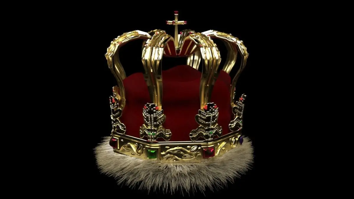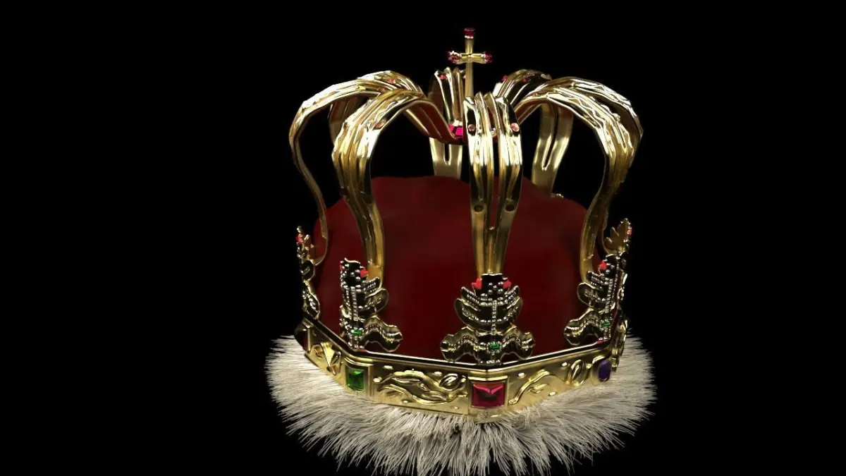 royal crown made from gold .diamond . emerald and others can be used as a piece of jewelry , or an antique stand-alone , or as a symbol for royal and luxury made by 3ds max , vray ,
