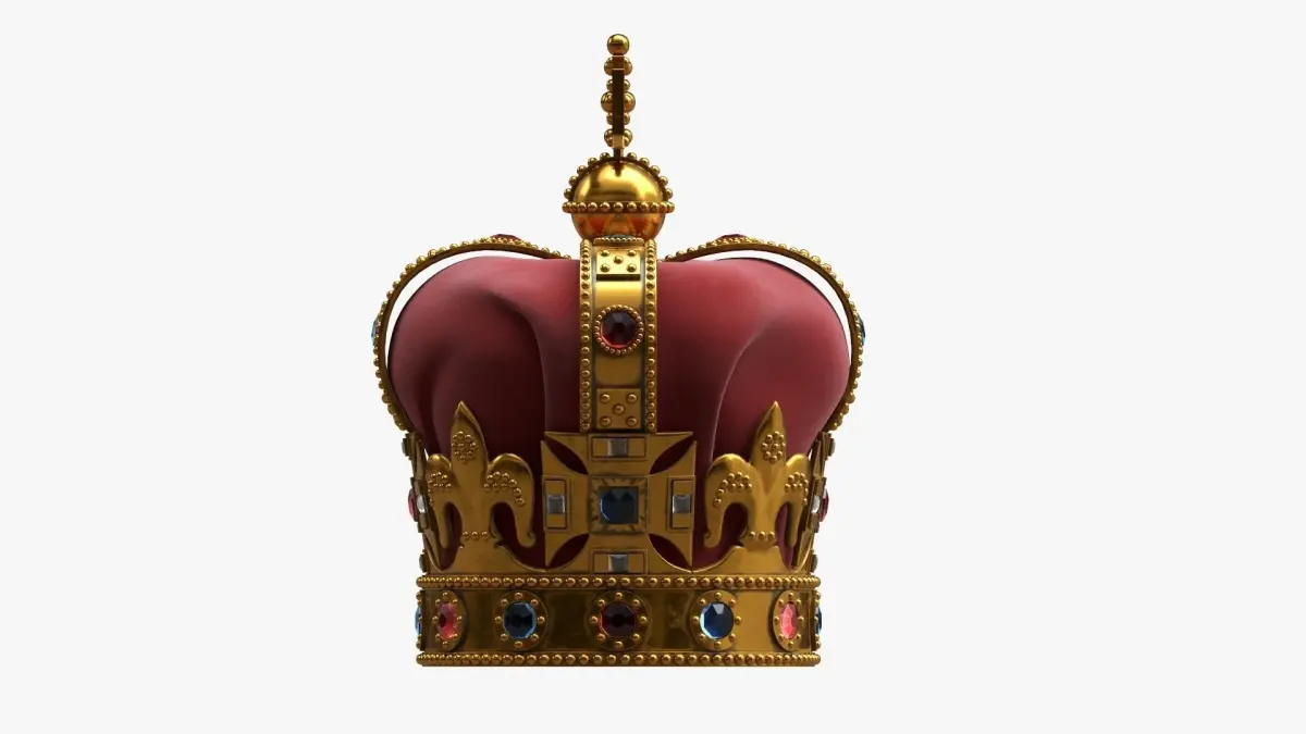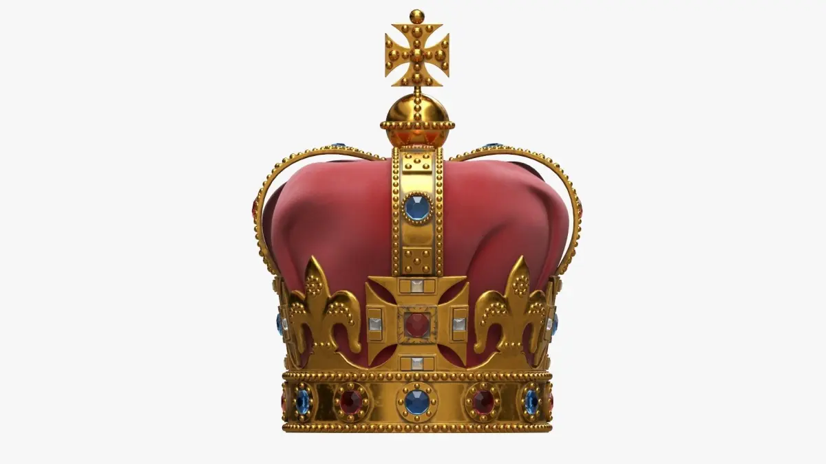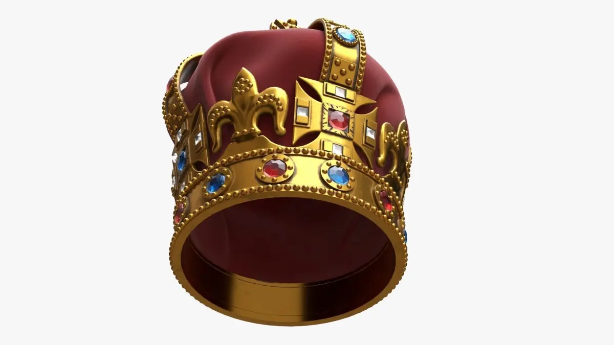 Royal crown with gems and velvet 02 3D model