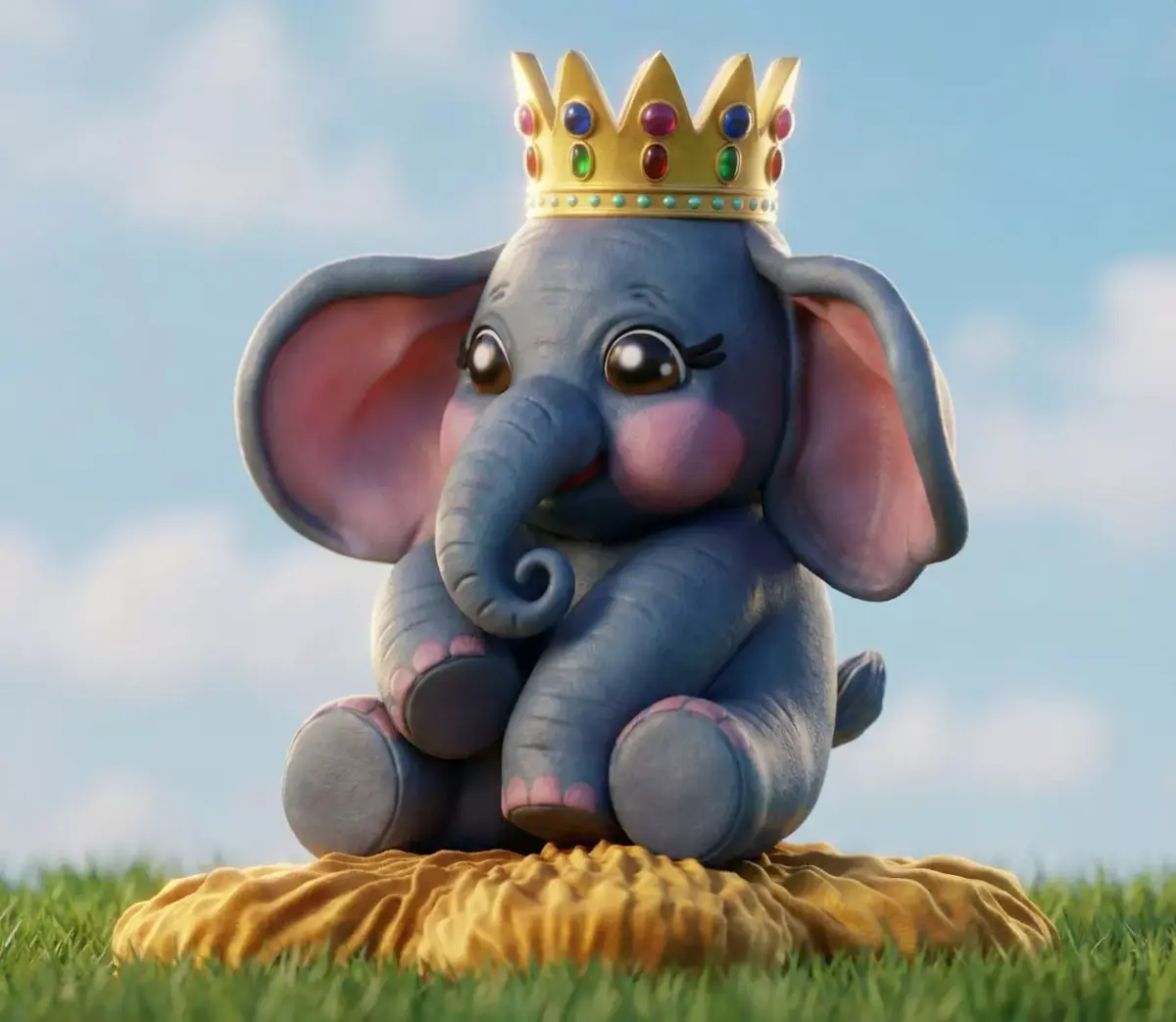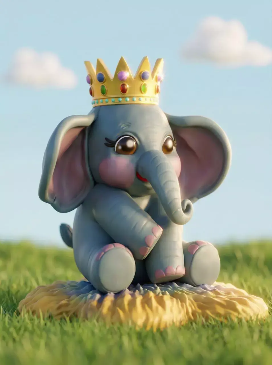 Royal Elephant 3D is a cute, cartoon-style baby elephant wearing a crown. Ideal for 3D printing, decoration, or creative projects, this model combines playful design with regal elements, featuring a crown adorned with colorful gems and a textured cushion base—Suitable for decorative use, cake toppers, collectibles, or playful 3D prints.