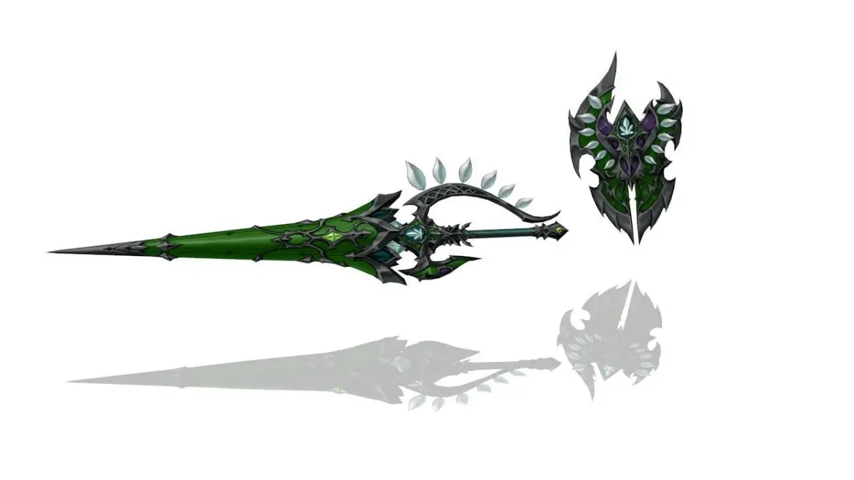 A set of a spear and a shield in a royal/magical style that comes with two variants.
