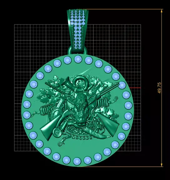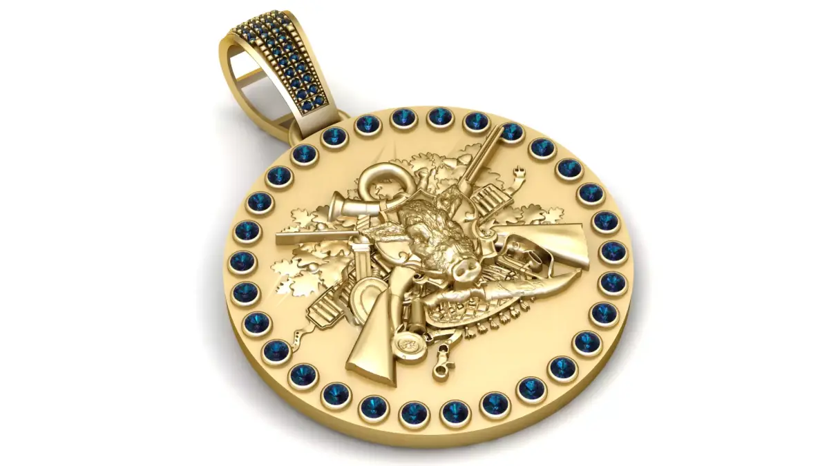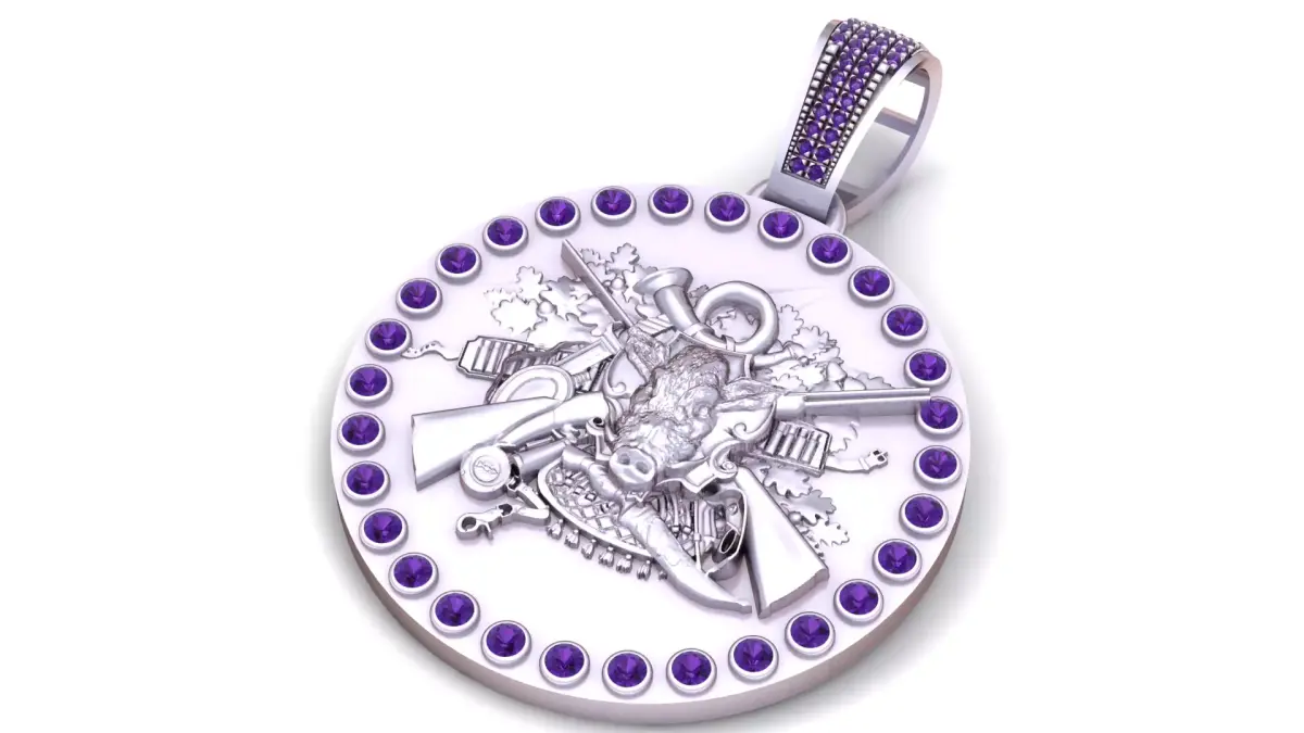 This majestic round medallion pendant is a premium 3D printable jewelry model, featuring an intricate high-relief hunting emblem at its center. The design showcases a powerful animal head surrounded by classic hunting elements, finely sculpted foliage, and a detailed circular layout, giving the piece a bold royal and heritage-inspired character.