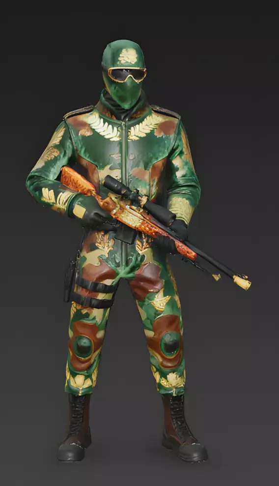 The Overall Concept This asset is a luxurious, high-fashion take on traditional forest reconnaissance gear. It merges the tactical silhouette of a professional marksman with the opulent aesthetics of European royalty, making it perfect for an elite hunter, a royal bodyguard, or a prestige-tier sniper skin.