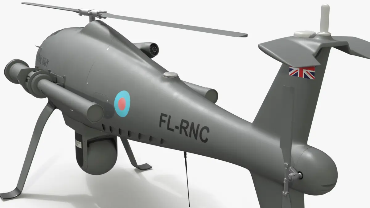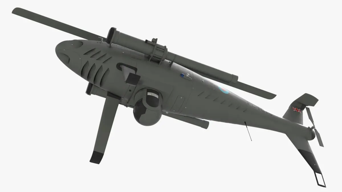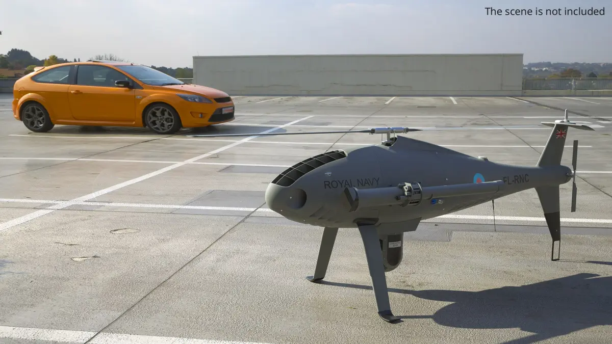 Royal Navy Camcopter Recon Helicopter Grey Rigged for Maya is a 3d model of a futuristic unmanned aerial vehicle designed for advanced naval operations.