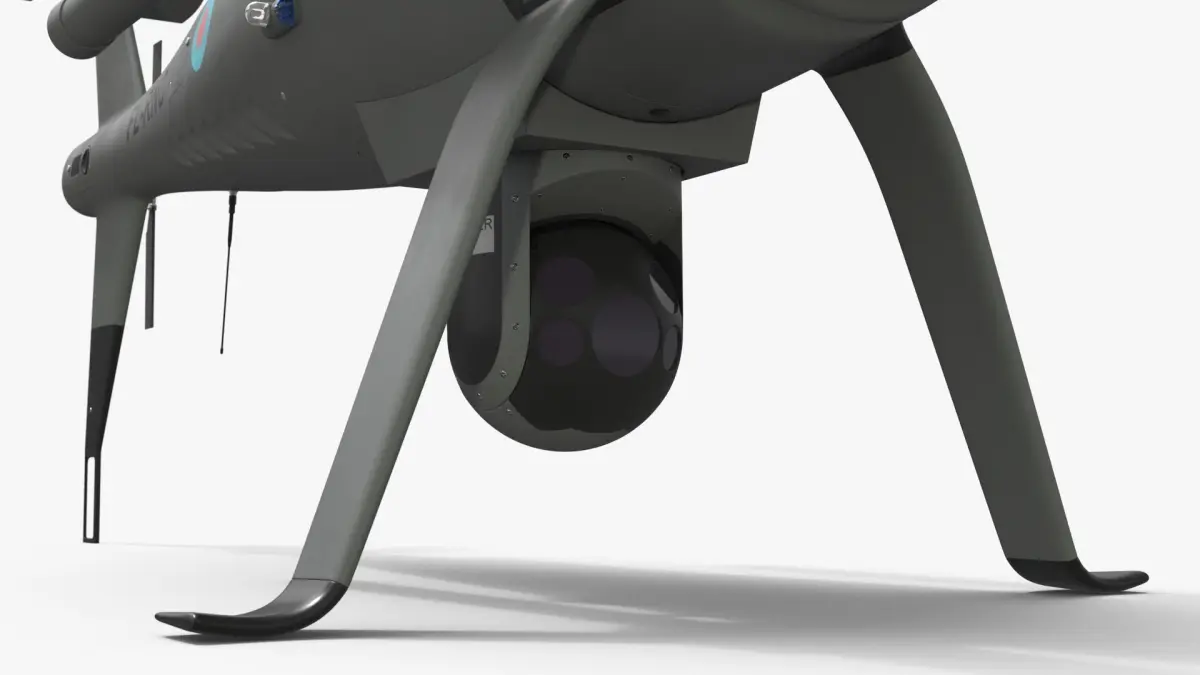 This drone features a sleek, aerodynamic design with dual rotors, providing stability and agility for reconnaissance missions. The model includes detailed elements such as landing gear, antennas, and realistic textures to simulate actual materials. Its compact design allows for easy navigation in challenging environments, making it a vital tool for modern military strategy.