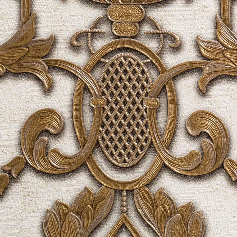 Elevate interiors and design renders with a luxurious gold baroque wallpaper texture featuring an embossed, royal crest motif and deep relief detailing for a richly tactile look in 4K resolution suitable for high-end visualization and print uses. The pattern showcases scrolling acanthus flourishes, lattice medallions, and antique-gold highlights on a warm ivory base, delivering an elegant vintage ambiance for living rooms, boutique spaces, and classical product mockups alike. Provided as a seamless tile, it repeats cleanly for large-scale backdrops in CG scenes, architectural visualization, and digital staging, while maintaining crisp micro-grooves and metallic sheen for photoreal results. Ideal for CGTrader buyers needing turnkey textures for Unreal Engine, Unity, Blender, 3ds Max, Cinema4D, and Substance workflows, with consistent edge wrap and uniform lighting baked for plug-and-play outcomes. Perfect for branding, packaging, posters, or printable wall art where a refined heritage aesthetic is desired without heavy shader setup or custom displacement crafting.