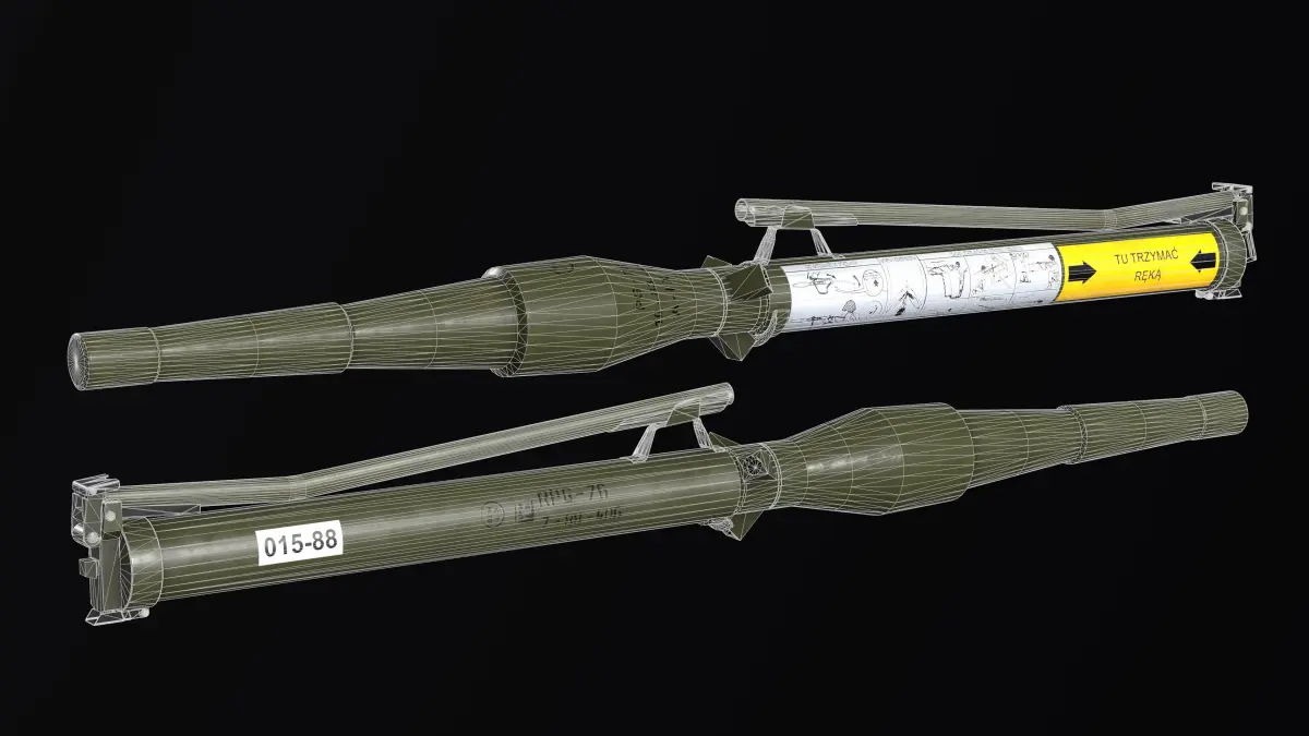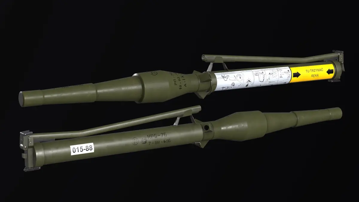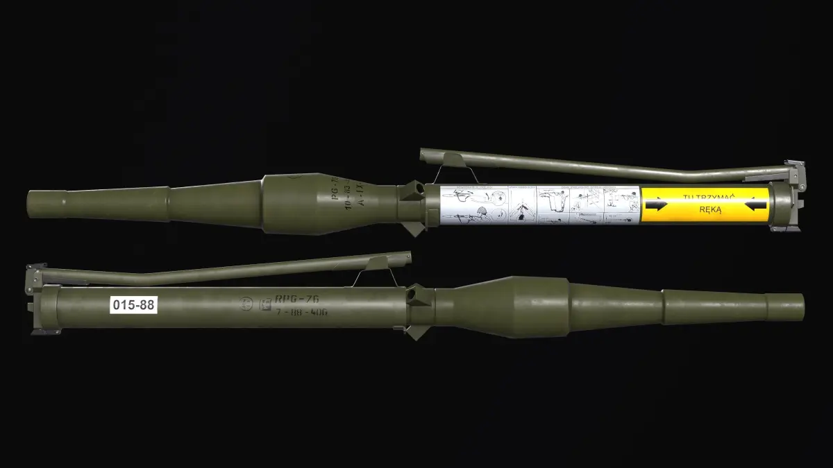 P.S.: The 3D model contains two versions of the RPG-76 Komar, with the buttstock folded and with the buttstock unfolded.