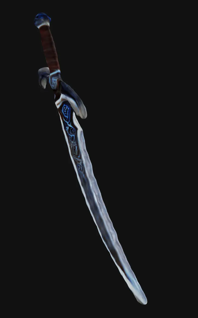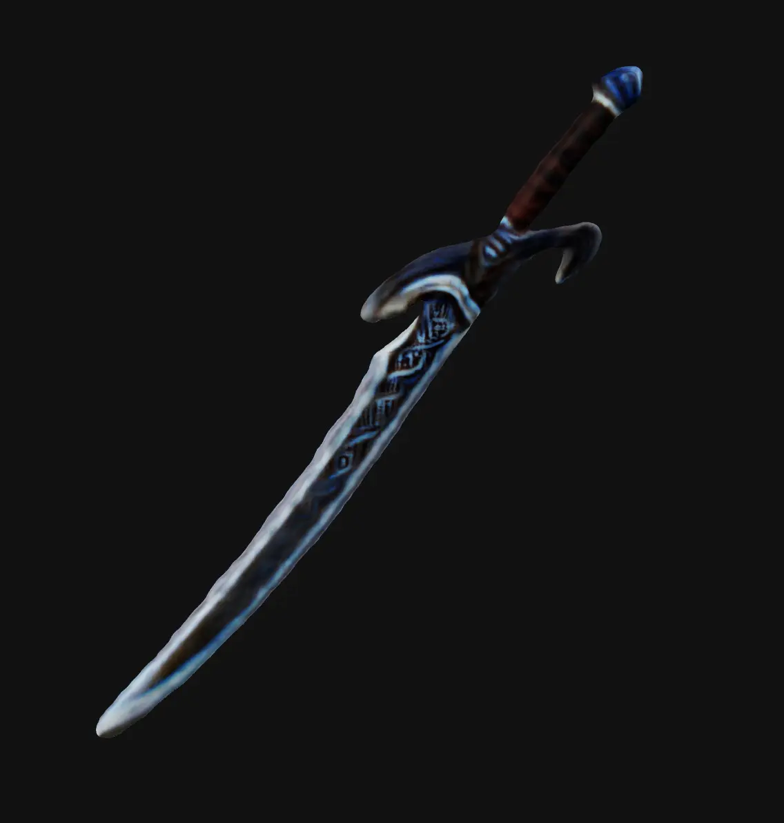 Unleash the chill of ancient magic with the Frostbound Rune Longsword – a high-quality, game-ready 3D asset perfect for fantasy RPGs, action-adventure titles, or cinematic environments. This sword features a sleek, slightly curved blade etched with glowing blue runes, suggesting a mystical origin tied to ice or arcane energy. The blade's stylized design and intricate runic carvings evoke a sense of forgotten power, ideal for a frost mage, cursed warrior, or elemental guardian. The crossguard has a uniquely organic, claw-like shape, resembling bone or horn, while the leather-wrapped grip ensures visual realism and a grounded medieval aesthetic. Subtle edge wear, frost highlights, and glowing accents enhance immersion for both third-person and first-person gameplay.
