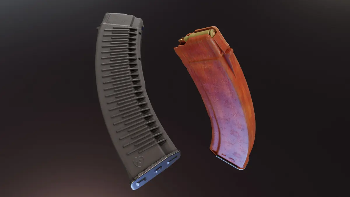 Both mags use one PBR Material in 4K plus separate 2K for ammo. I also inculed slightly used/dirty textures.