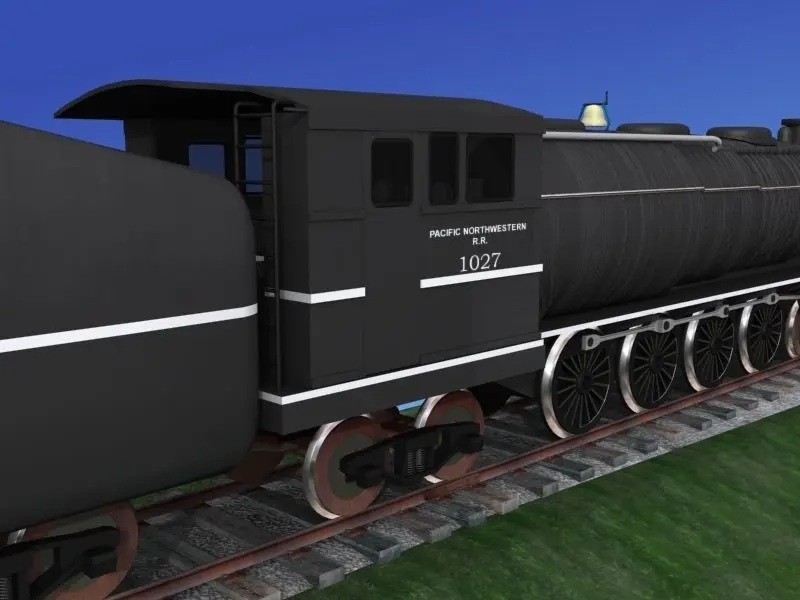 This type of steam locomotive was used around the world. The one modelled here is a US Berkshire Steam locomotive used in the early 20th century. There were powerful enough to pull the long heavy trains across the US through the Rocky Mountains during the WWII Era.