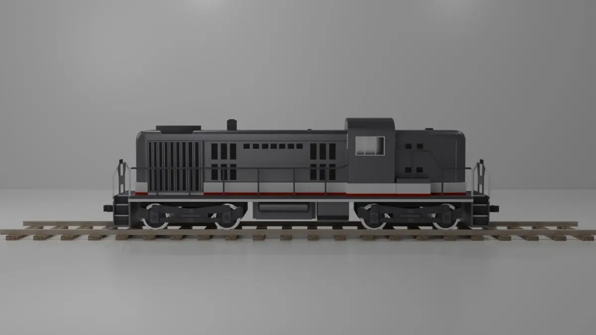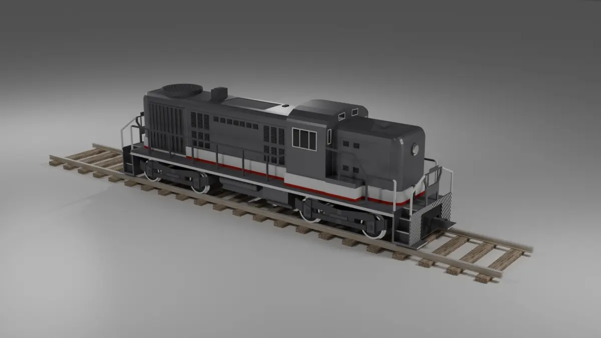 Diesel locomotive RSD-5 was taken as a reference. Low-poly model. You can use this model for rendering and games. (Rail width changed to narrower).