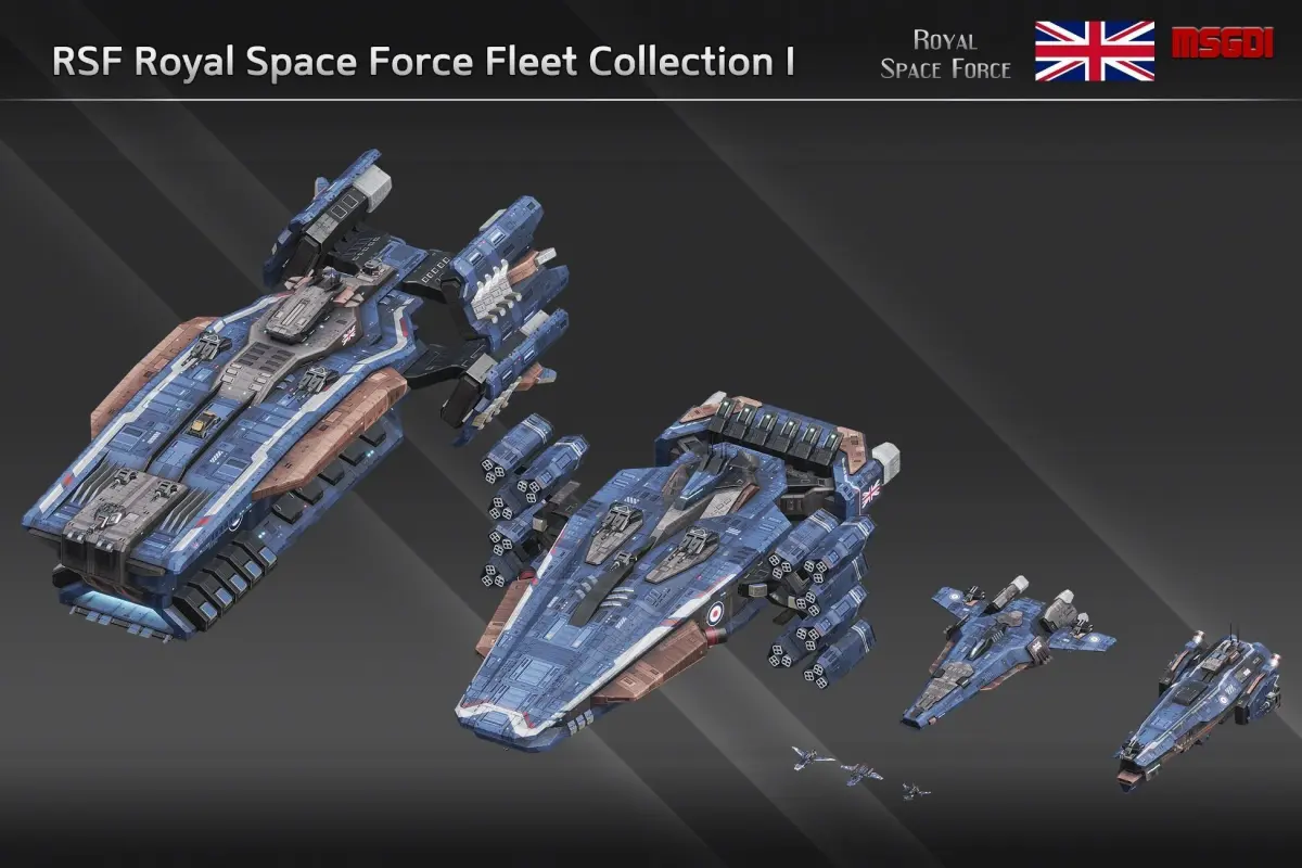 This pack contains a collection of ships of the Royal Space Force. The ships can be used in a space themed game.