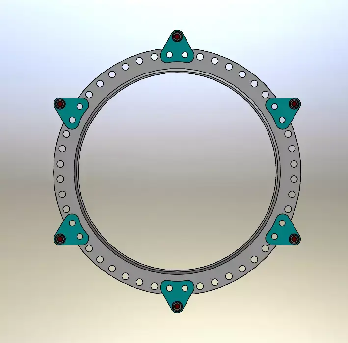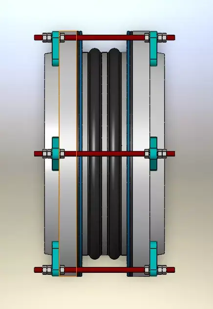 In this project, a 48-inch rubber expansion joint with 6 restraints has been designed. At all stages, mechanical and buoyancy design principles have been observed. The model is fully optimized and you can use the parts drawing to build and assemble the components. In preparing the model, all mates and dimensions have been applied in a systematic manner. So you can easily edit the model if needed. Each component is named and common, standard materials are applied to them. Bolts, nuts and washers are according to ISO standards. In the assembled model, all parts are correctly placed together. In the DRW file, different views of the final part are provided. Also, the specifications of the components, including their materials, weight, and quantity, are included in the BOM table. The 2D drawing is also in pdf format. Finally, the original assembly file is exported in STEP, STL, IGS and 3mf formats.